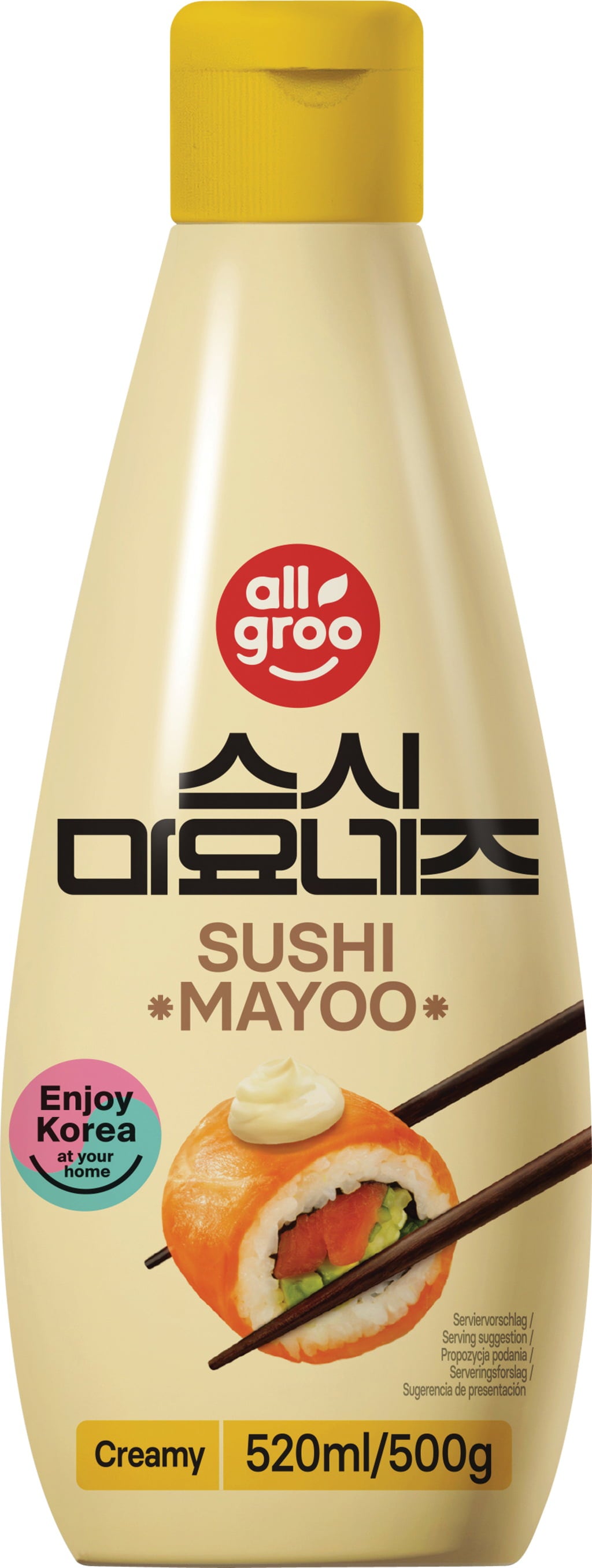 Sushi Mayoo Sauce od allgroo rozpieszcza kubki smakowe cudownie kremową, lekko słodką i aromatyczna nutą — dokładnie tego brakowało Twojemu sushi, Sushi-Rolls lub daniom typu Bowls.
