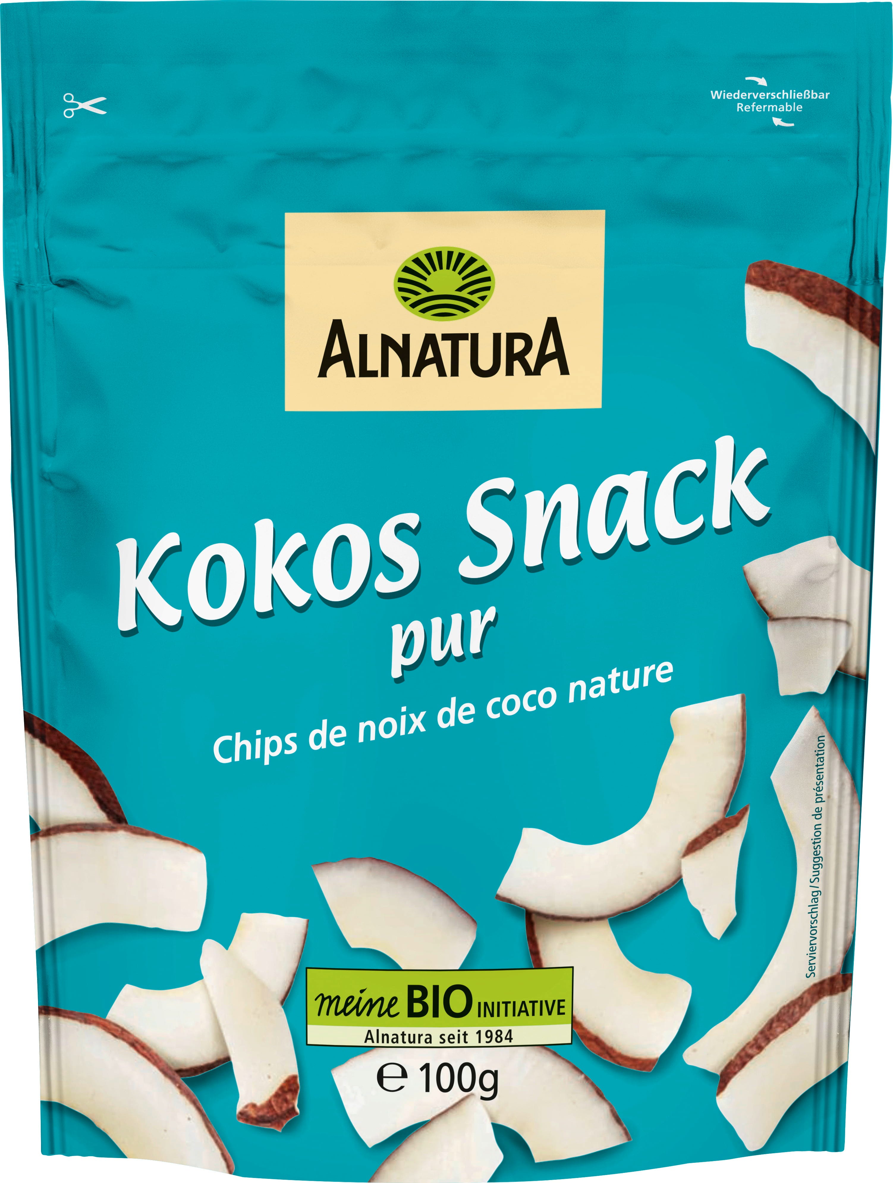 Intensywnie aromatyczny, wakacyjny klimat: Alnatura Bio Kokos Snack pur. Chrupiące, organiczne kawałki kokosa to idealna przekąska na przerwę lub wieczór filmowy, bez żadnych dodatków. Produkt idealnie nadaje się do zabrania ze sobą dzięki torebce z możliwością ponownego zamknięcia.