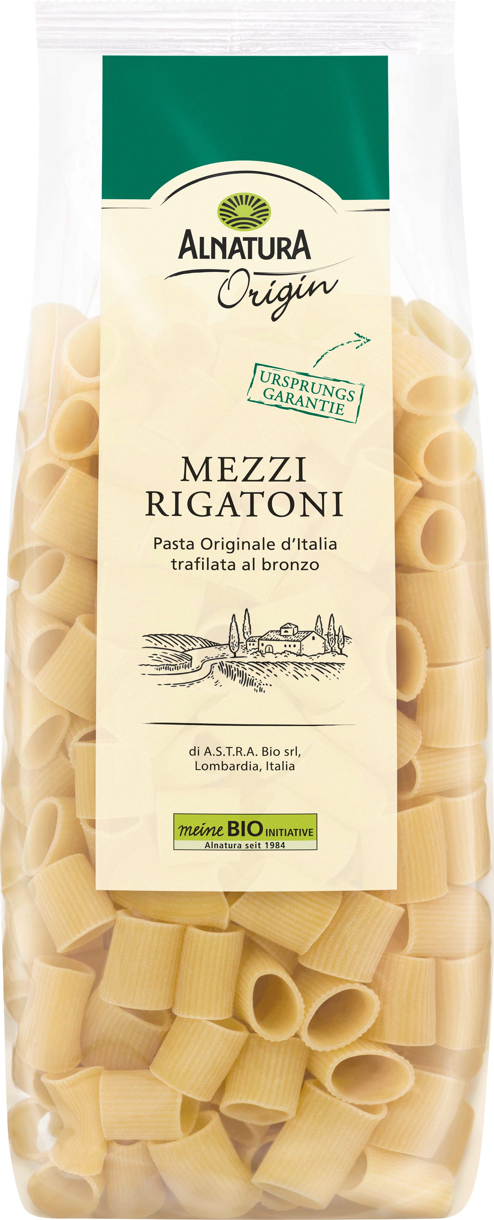 Organiczny makaron Alnatura Mezzi Rigatoni jest nieco krótszy i grubszy niż klasyczne makarony z południowych Włoch i Sycylii. Idealnie nadaje się do kremowych lub gęstych sosów. Tradycyjna forma z brązu tworzy chropowatą powierzchnię, która szczególnie dobrze wchłania sosy. Idealny również do zapiekanek. Wykonany w 100% z włoskiej semoliny z pszenicy durum.
