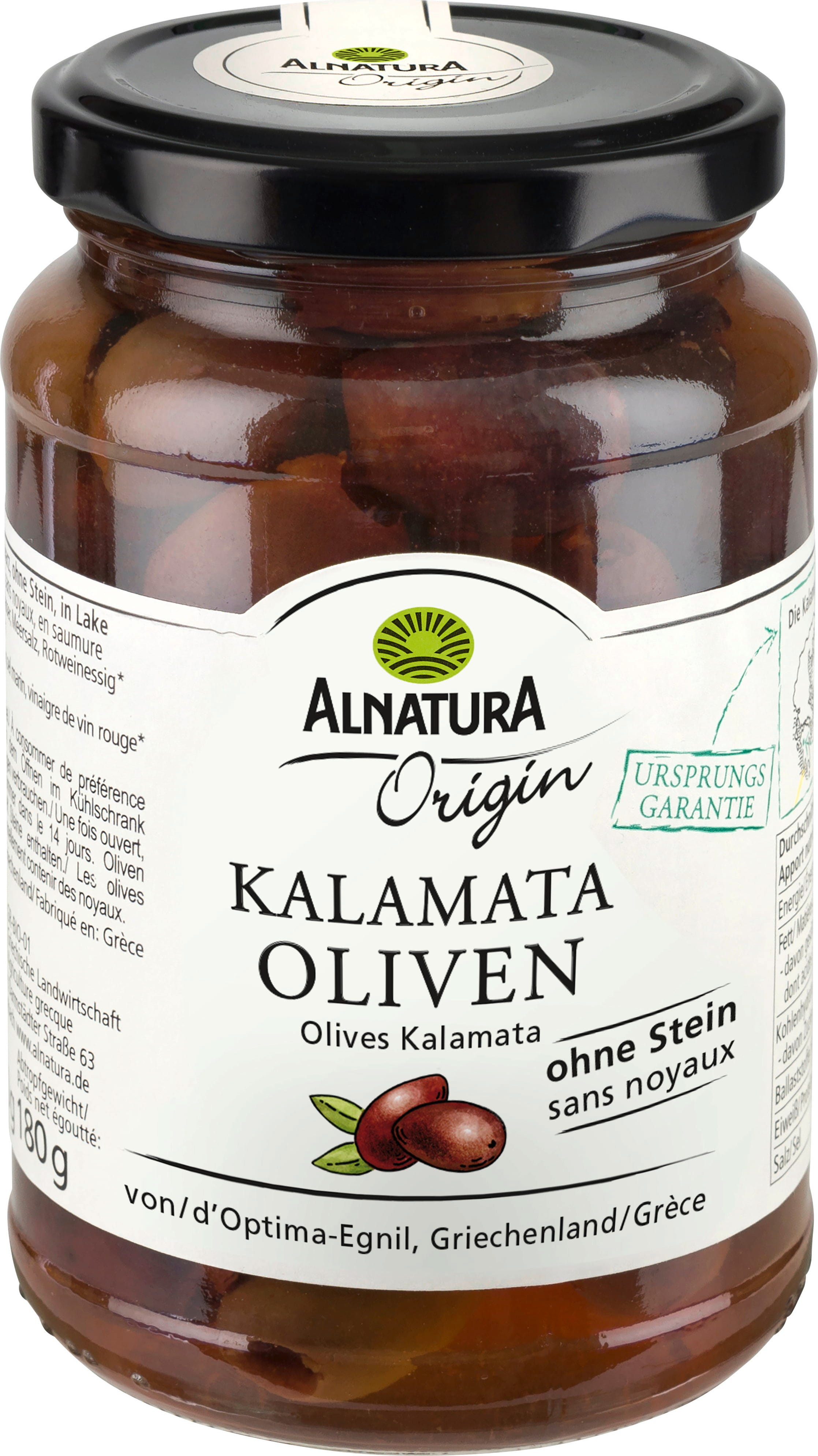 Oliwki Alnatura Organic Origin Kalamata pochodzą z Grecji. Te owocowe, aromatyczne oliwki zachwycają swoim pulchnym miąższem. Są pozbawione pestek i gotowe do spożycia. Oliwki są idealne do sałatek i sosów, jako dodatek do pizzy lub na talerzu antipasti.