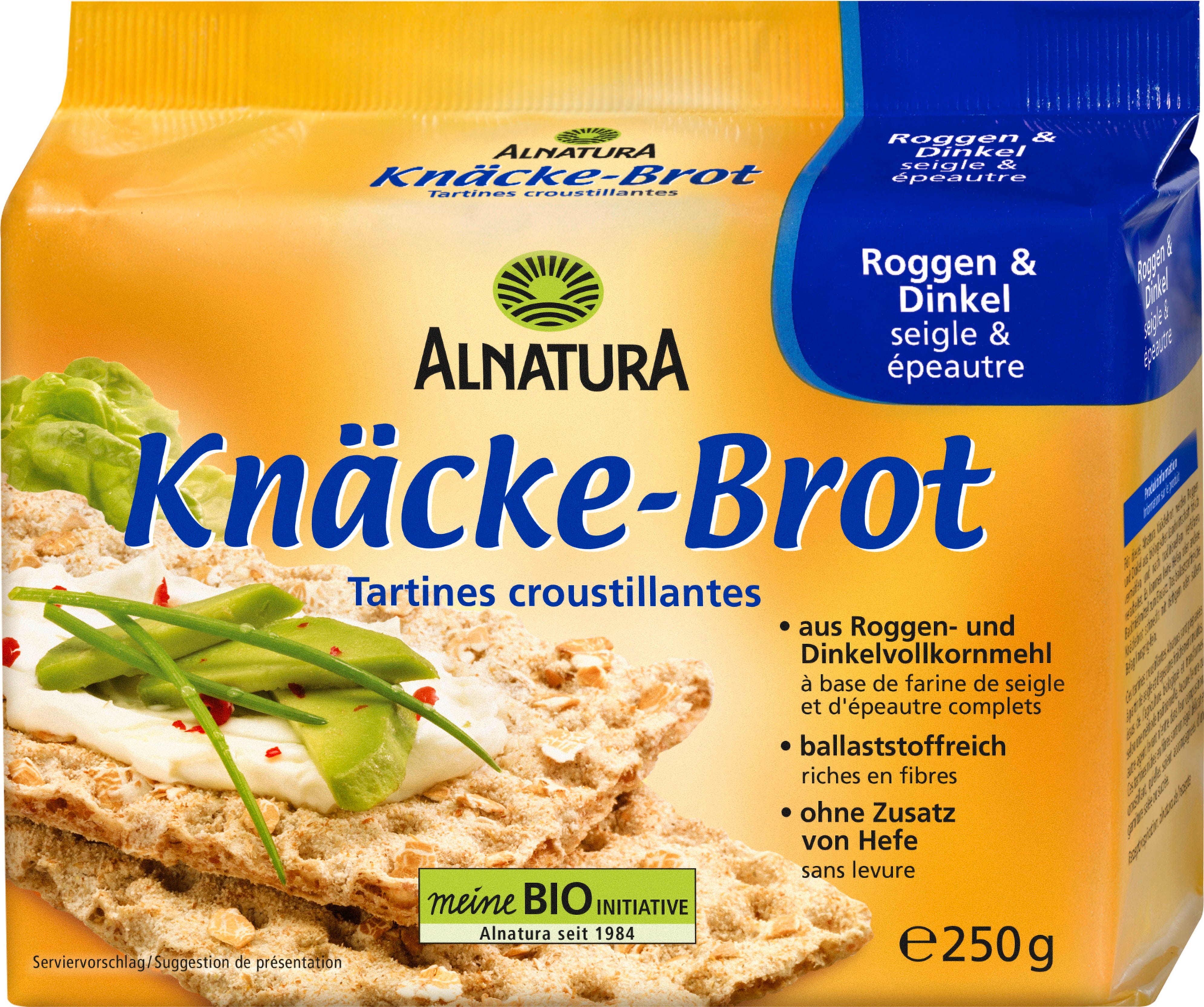 Pełnoziarnista mąka żytnia i orkiszowa, uprawiana i mielona zgodnie ze standardami ekologicznymi, stanowi podstawę pieczywa chrupkiego Alnatura. Wegańskie pieczywo jest wytwarzane bez drożdży i stanowi chrupiącą i pyszną ucztę, zarówno z pikantnymi, jak i słodkimi dodatkami.