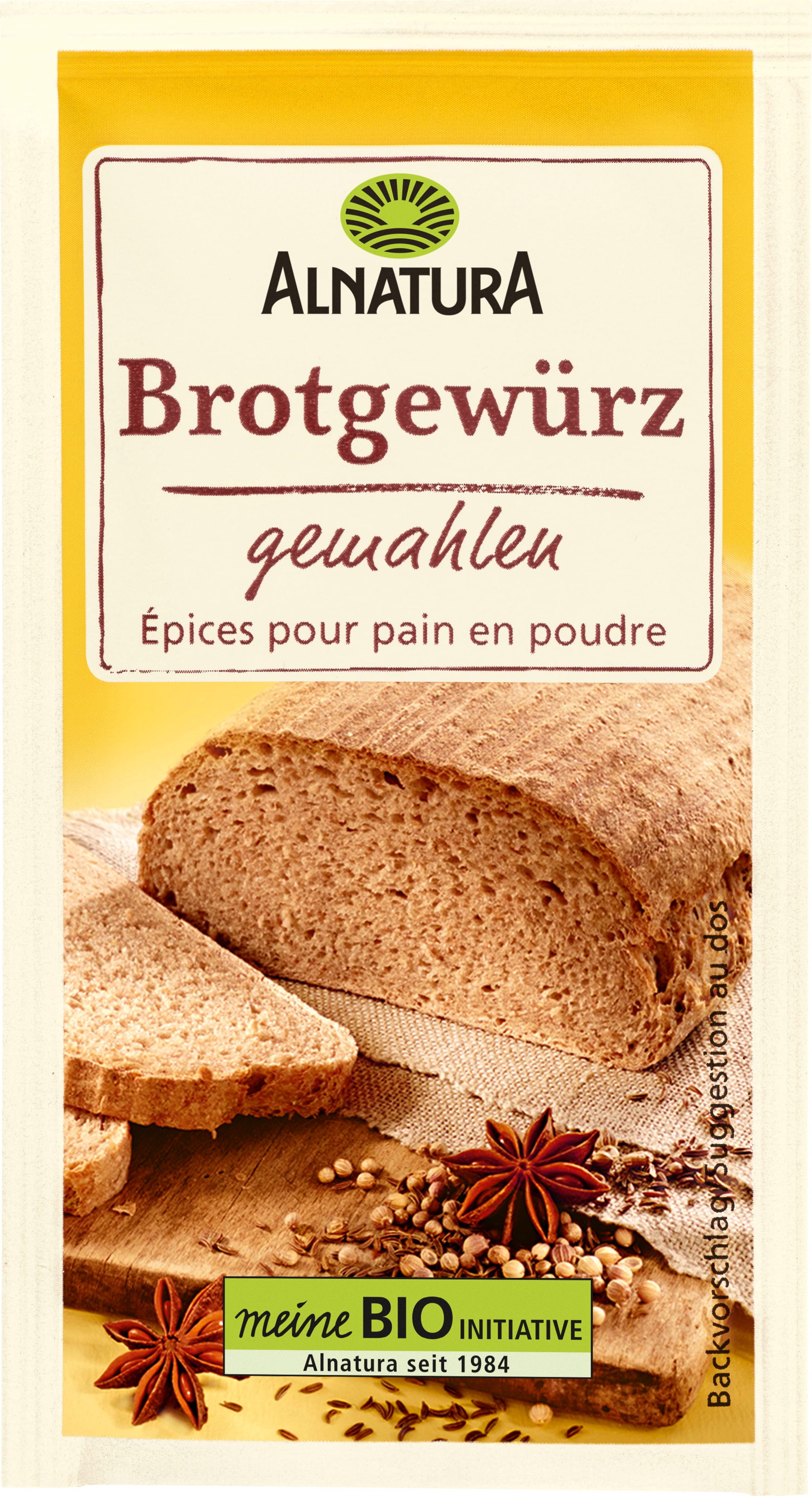 Ekologiczna przyprawa do chleba Alnatura z anyżu, kopru włoskiego, kolendry i kminku błyskawicznie uszlachetnia wypiekany w domu chleb. Szczególnie nadaje się do chleba żytniego i na zakwasie. Składniki przyprawy do chleba pochodzą z upraw ekologicznych.