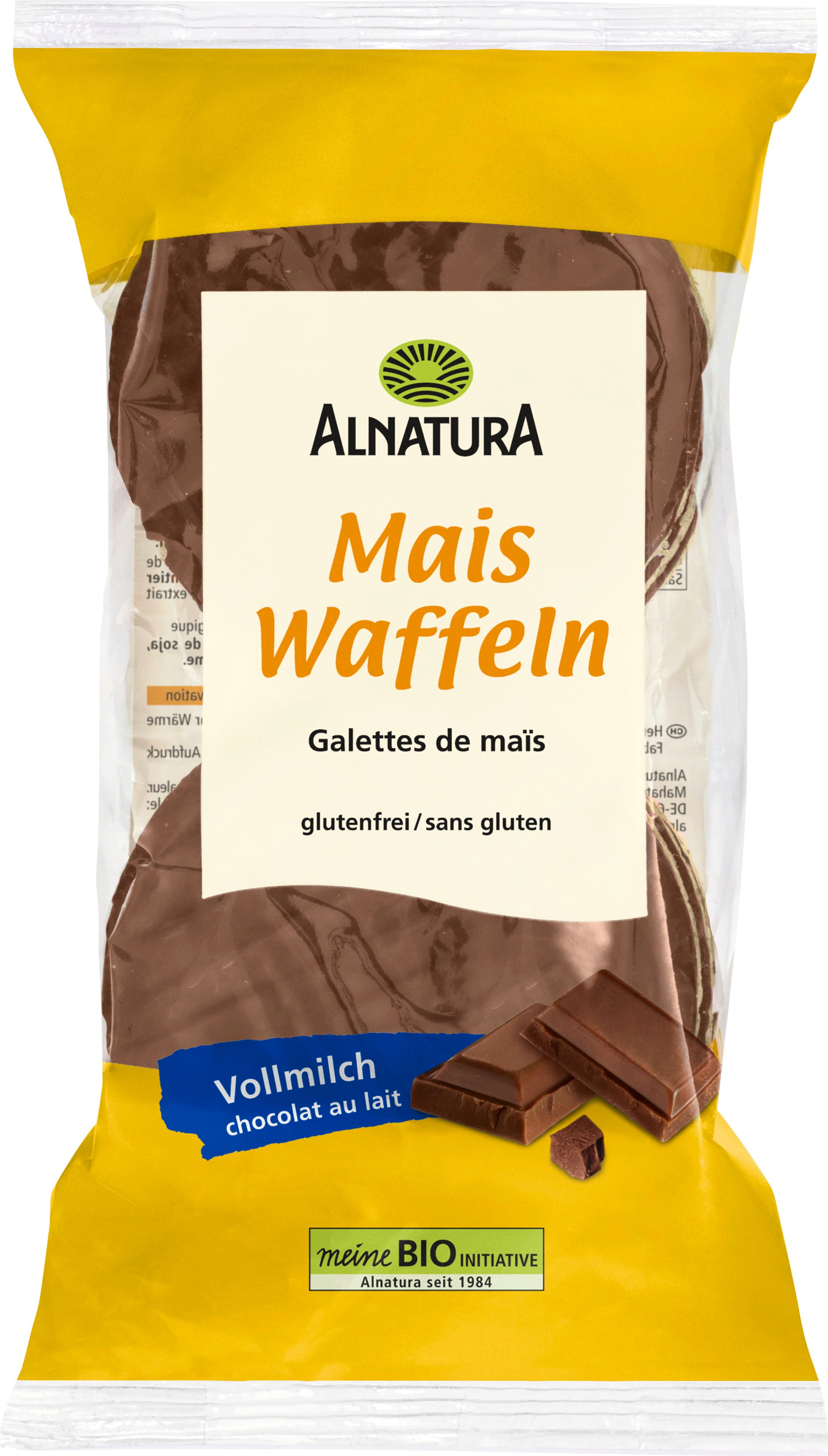 Alnatura Bio wafle kukurydziane z czekoladą mleczną, 65 g
