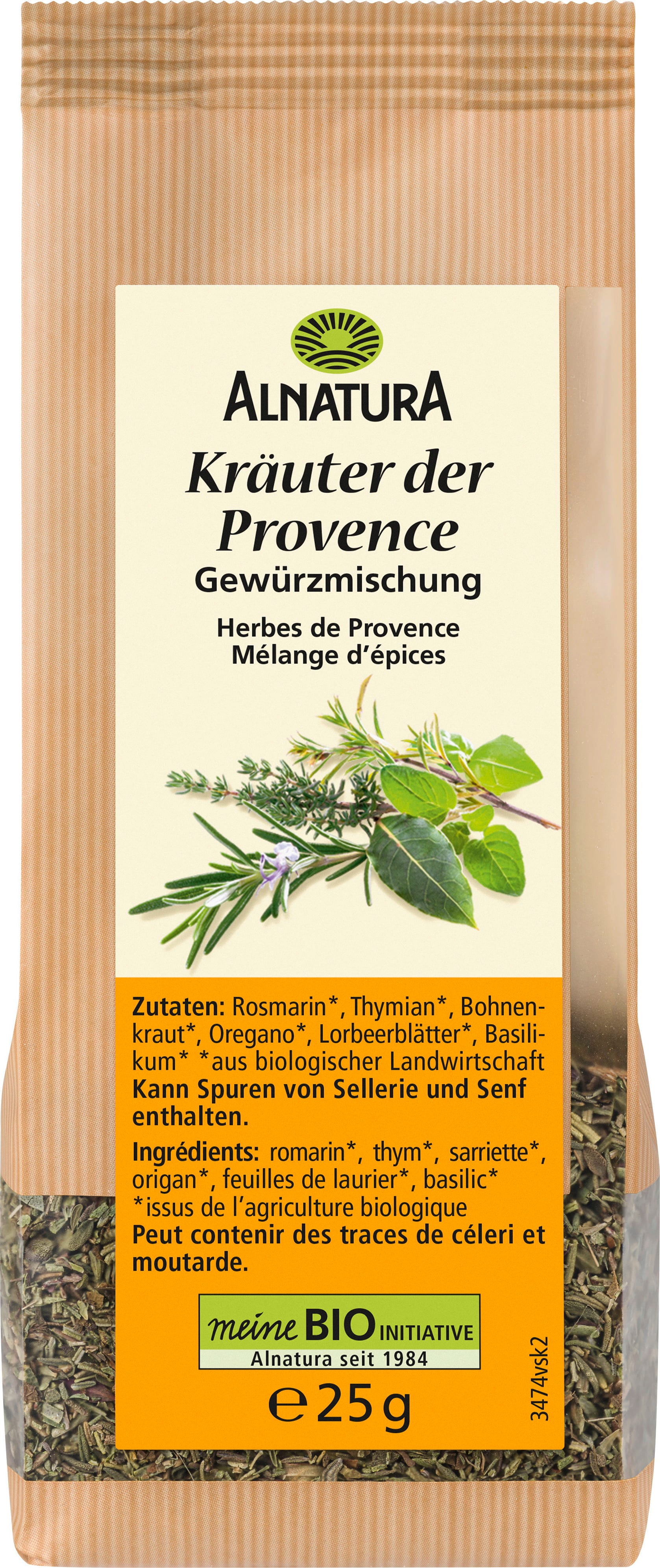 Dotyk południa Francji w Twojej kuchni: przenieś zapach słonecznego południa prosto na swój talerz dzięki organicznym ziołom prowansalskim Alnatura. Ta harmonijna kompozycja rozmarynu, tymianku, cząbru, oregano, liścia laurowego i bazylii pochodzi z upraw ekologicznych i nadaje potrawom typowo prowansalski smak. Niezależnie od tego, czy chodzi o pieczeń wołową i jagnięcą, śródziemnomorskie frytki warzywne czy chrupiące ziemniaki au gratin - ta mieszanka zapewnia prawdziwie wakacyjne chwile.
