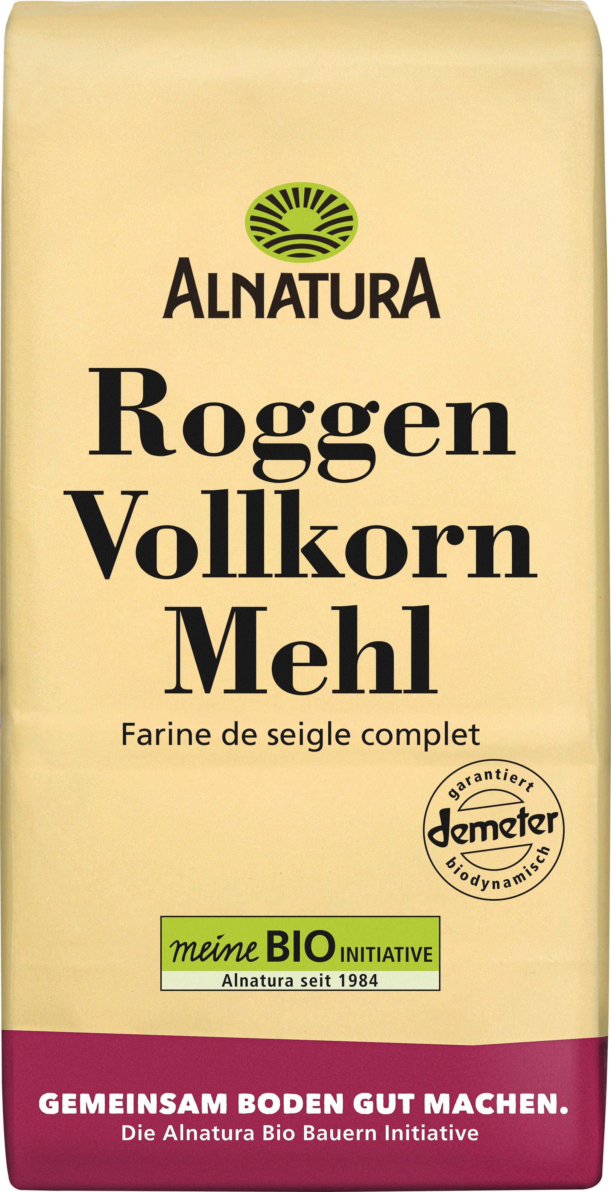 Do produkcji tej organicznej żytniej mąki pełnoziarnistej marki Alnatura mielone jest całe ziarno. Dzięki temu zachowane zostają składniki zboża wraz z zarodkiem i warstwami zewnętrznymi. Nadaje się do chlebów na zakwasie, ale można ją również łączyć z mąką pszenną i orkiszową w celu wypieku chlebów mieszanych. Kupując tę mąkę, wspierasz inicjatywę Alnatura Bio-Bauern na rzecz rozwoju rolnictwa organicznego w Niemczech.