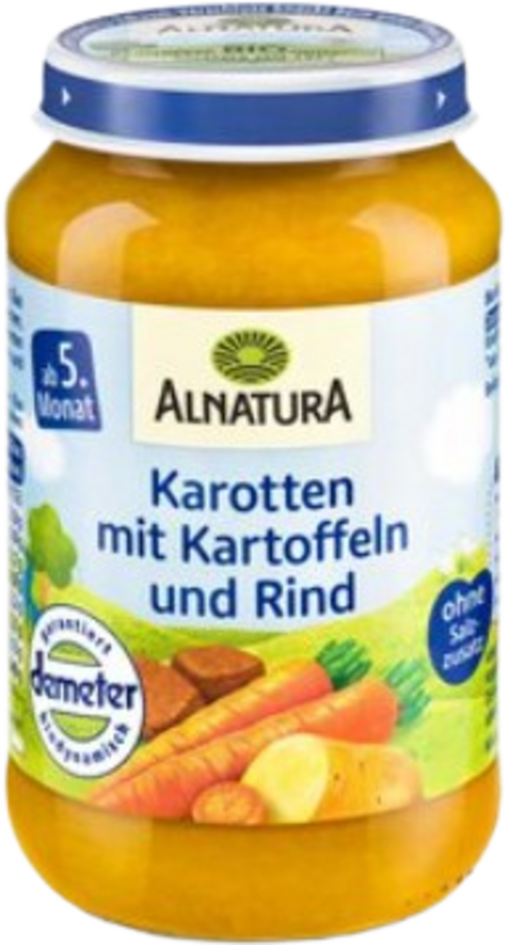 Rozszerzanie diety dziecka można zacząć nie tylko od podania słodkich i smacznych owoców, ale również innych wyśmienitych dań! To połączenie można podać od 4. miesiąca życia i składa się z marchewek, ziemniaków i wołowiny, dzięki którym Twoje dziecko pozna nowe smaki. Zrównoważone danie smakuje najlepiej podgrzane, nie zawiera soli, glutenu ani laktozy. 99 procent składników pochodzi z biodynamicznej upraw Demeter, reszta jest również ekologiczna.