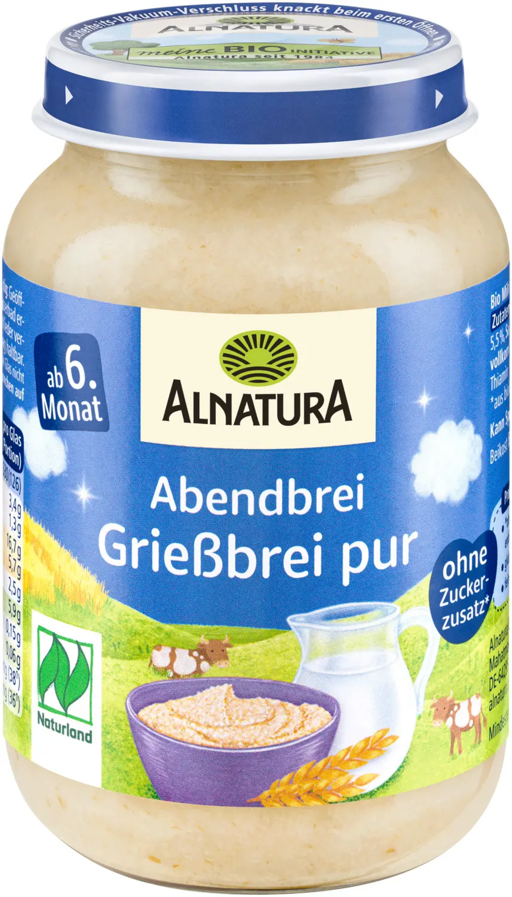 Naturalnie słodka owsianka przed zaśnięciem, z pysznej kaszy manny pszennej i mleka, idealna dla dzieci od 6. miesiąca! Receptura nie zawiera dodatku cukru, wszystkie składniki pochodzą z upraw ekologicznych lub upraw Demeter. Z tym produktem podajesz swojemu maluchowi, to co najlepsze. Owsianka smakuje zarówno na ciepło (kąpiel wodna), jak i na zimno i jest gotowa do podania, więc jest również doskonałym towarzyszem podróży!