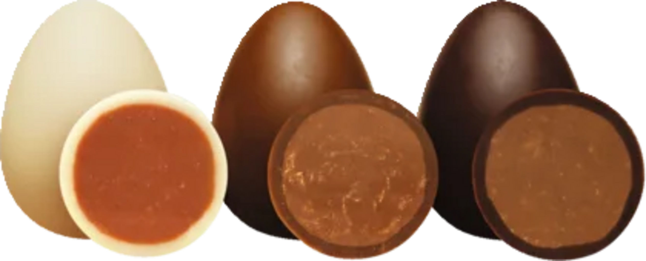 Wyśmienita mieszanka trzech rodzajów nadziewanych jajek wielkanocnych w jakości bean-to-bar