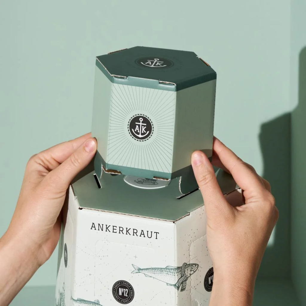 Ten kalendarz adwentowy, zapakowany w latarnię morską, emanuje północnoniemieckim stylem i skraca czas oczekiwania na Boże Narodzenie. Zawiera 24 ulubione produkty ANKERKRAUT w eleganckich słoikach z korkiem i praktycznych woreczkach uzupełniających. Jako ekskluzywny dodatek, zawiera również książkę kucharską (w języku niemieckim) wypełnioną po brzegi pasującymi przepisami.