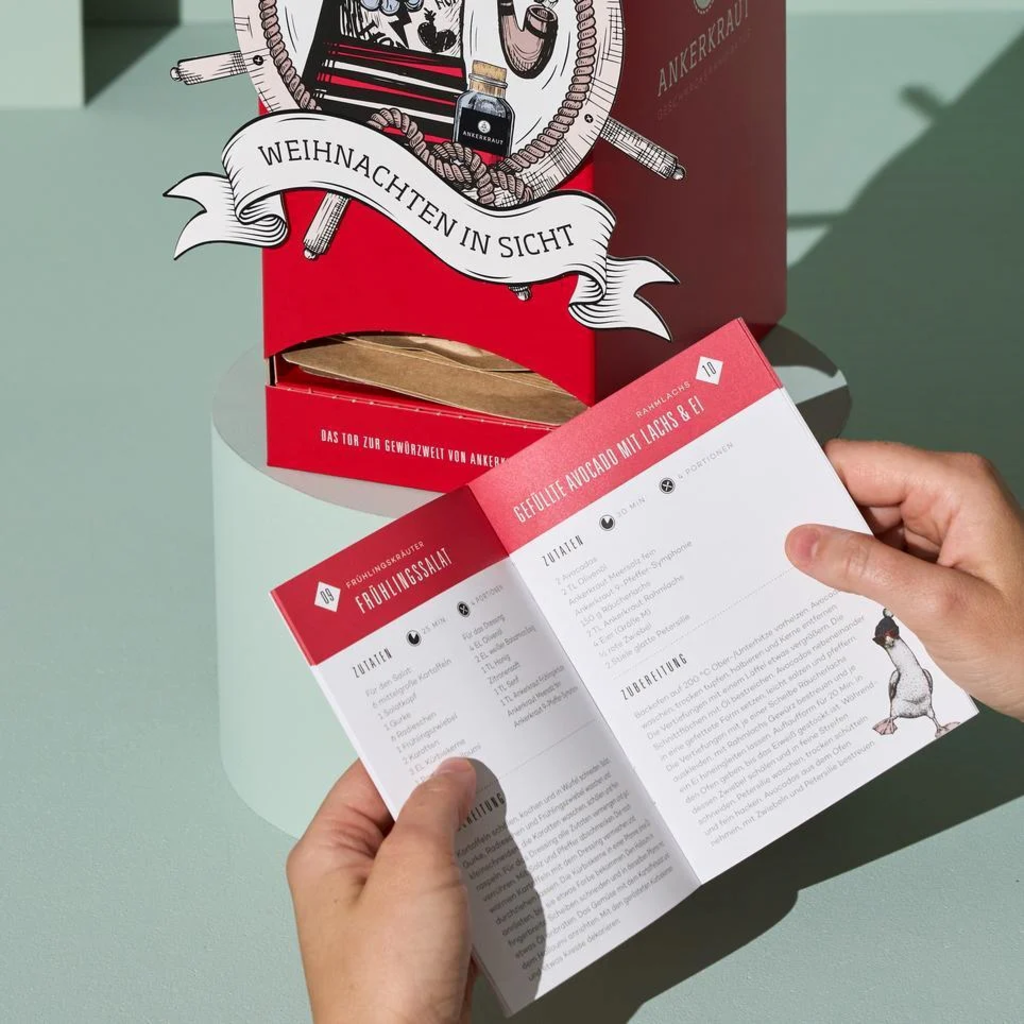 Znajdziesz mieszanki przyprawowe do przystawek, dań głównych i deserów - jasne jest, że z tym kalendarzem adwentowym możesz doskonale zaopatrzyć się w zapasy przypraw. Nic nie stoi na przeszkodzie, aby oczarować swoich bliskich wyjątkowymi potrawami. Broszura z przepisami zawiera również praktyczne wskazówki i kreatywne inspiracje dla Twojej kuchni.