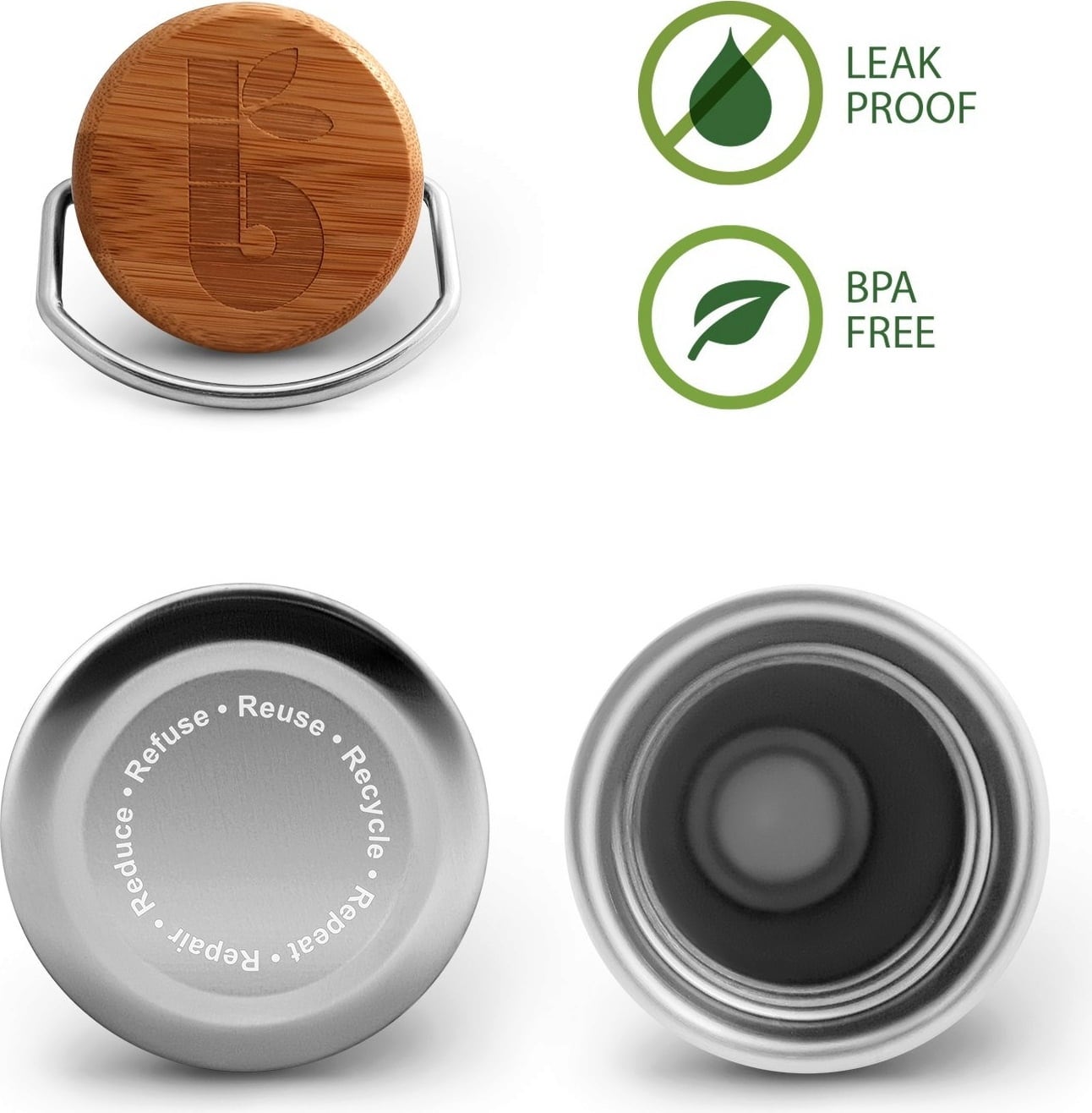 Dzięki tej butelce masz w dłoni idealnego towarzysza na co dzień! Niezależnie od tego, czy chodzi o sport, w biurze, w szkole, czy na wędrówki. Wykonany jest ze stali nierdzewnej, posiada szczelną bambusową zakrętkę i zachwyca ponadczasowym i prostym designem. Butelka nie zawiera szkodliwych substancji chemicznych i po użyciu można ją łatwo wyczyścić szczotką do butelek.