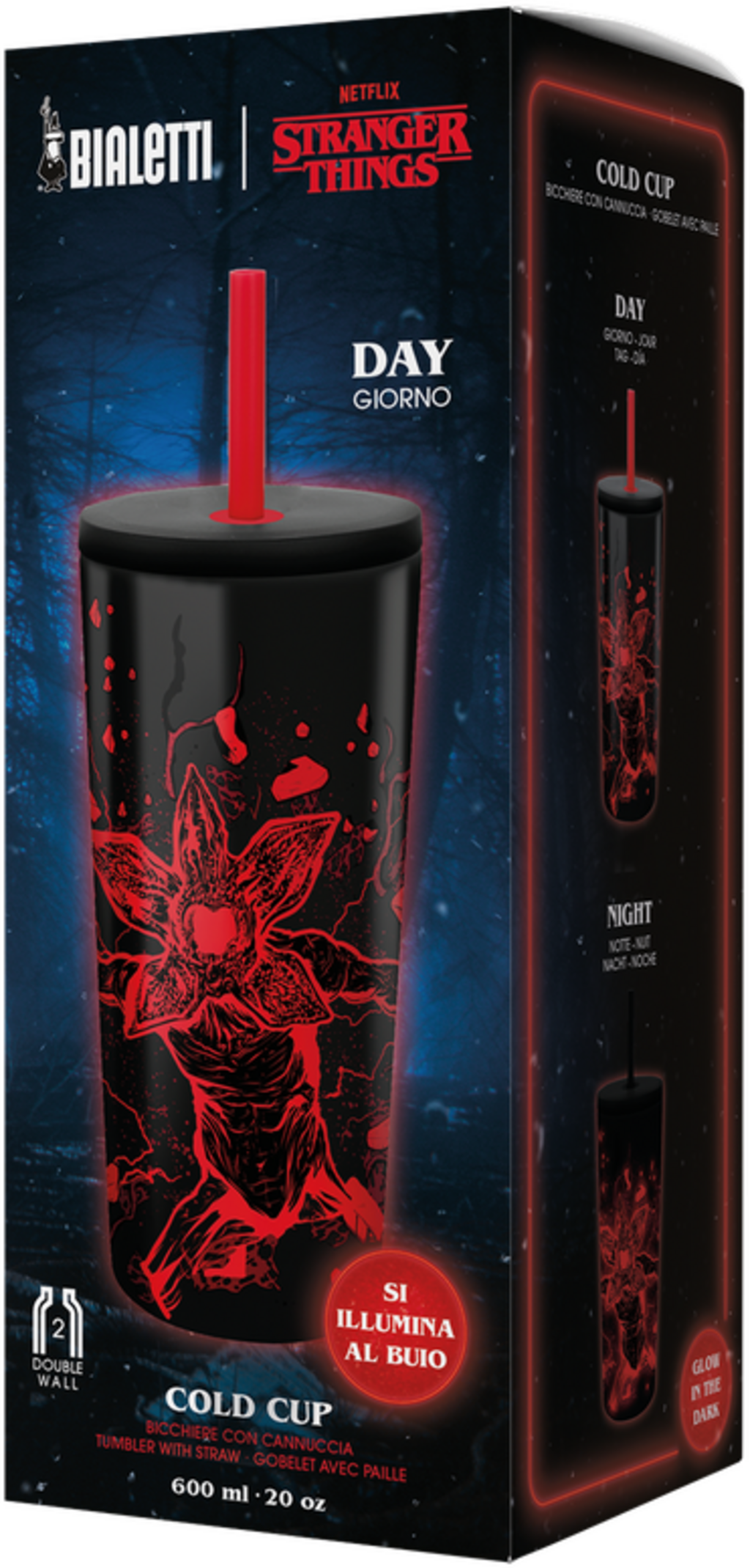 Ekskluzywnie narysowana grafika 3D w stylu "Stranger Things" sprawia, że ten kubek termiczny ze słomką jest prawdziwą atrakcją dla wszystkich fanów kultowego serialu.
