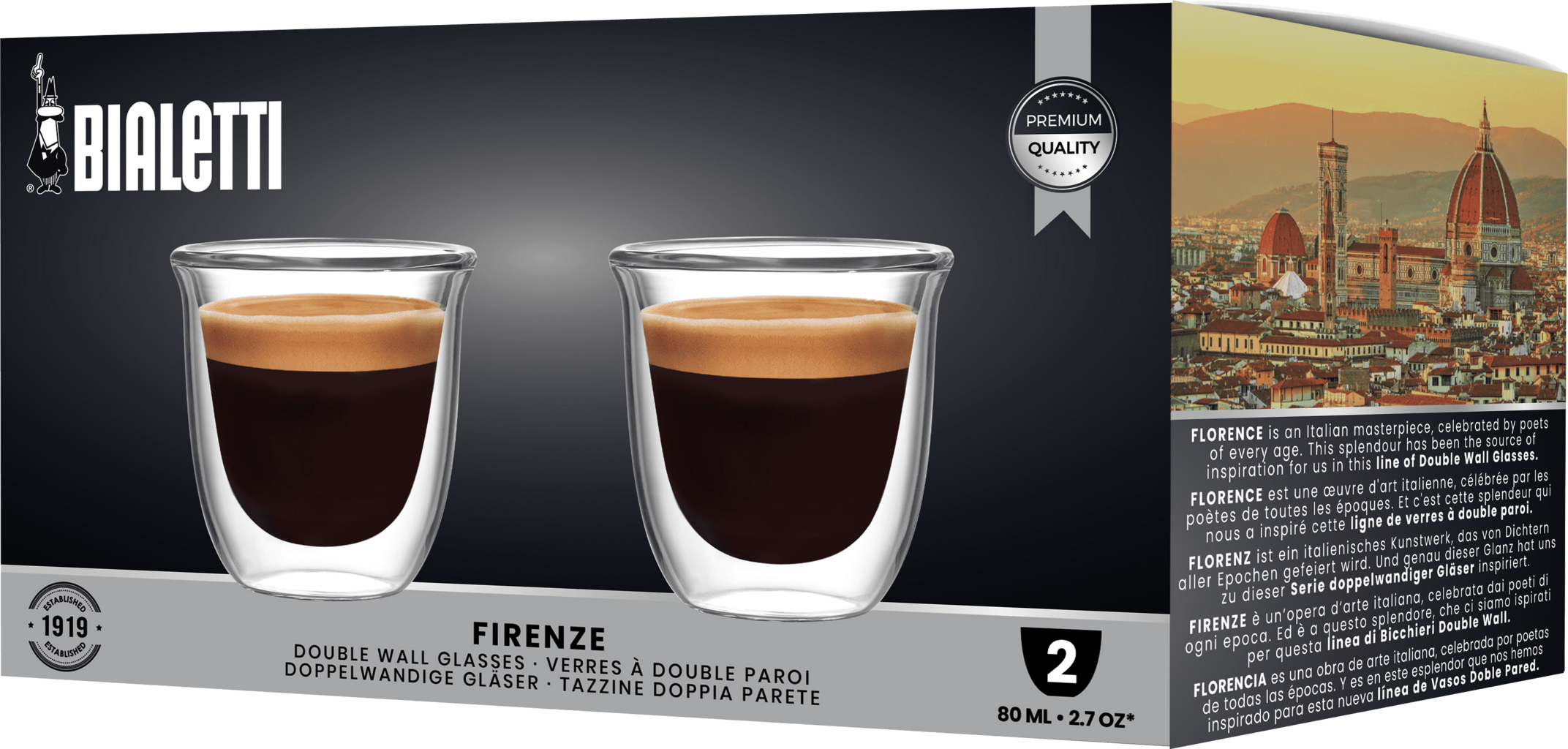 Bialetti Szklanki Firenze z podwójnymi ściankami, 2 szt., 80 ml