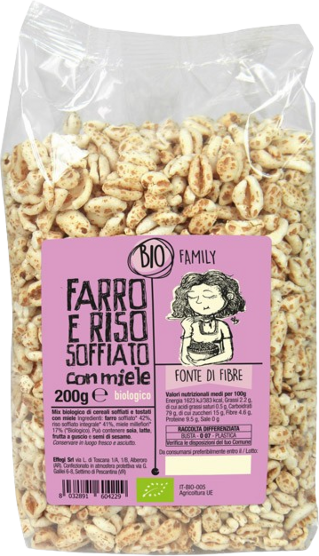 Dmuchany orkisz i pełnoziarnisty ryż, do tego delikatna słodycz miodu z dzikich kwiatów - idealne, aby dobrze zacząć dzień! Orkisz i ryż są szczególnie łagodne dla żołądka oraz dostarczają pełnowartościowego błonnika, również miód znany jest ze swoich zdrowotnych właściwości. W połączeniu z mlekiem, jogurtem czy sokami owocowymi mieszanka ta stanie się pełnowartościowym śniadaniem dla dużych i małych.