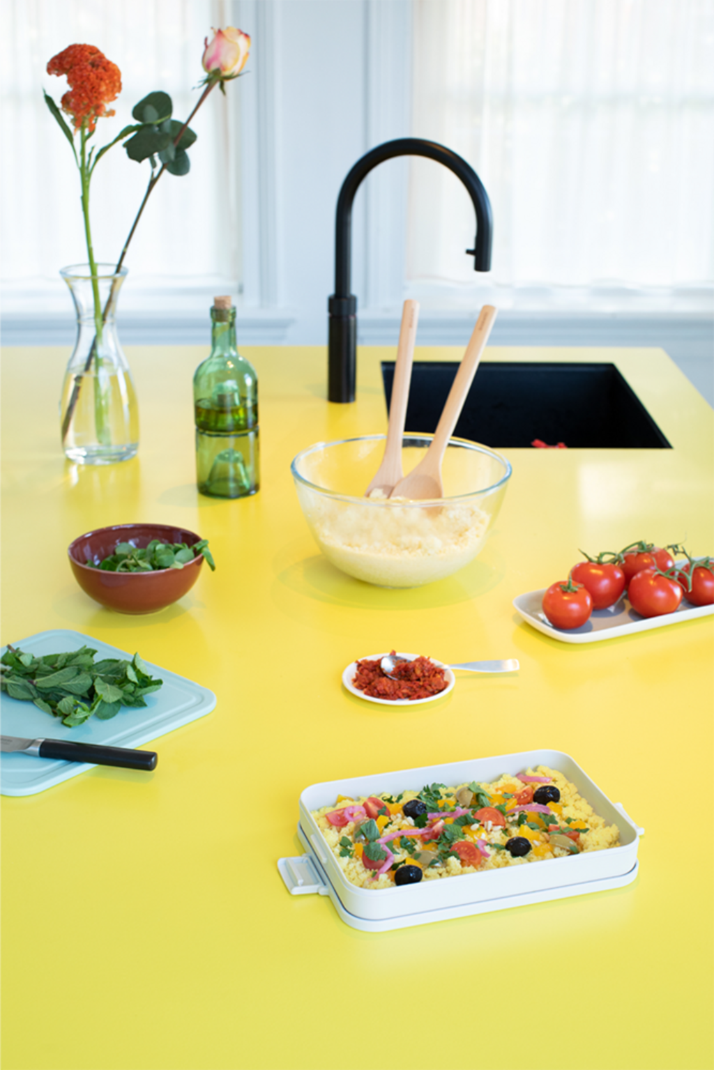 Praktyczny, zajmujący niewiele miejsca i trwały: płaski pojemnik na lunch Make & Take firmy Brabantia bez trudu zmieści się w każdej torbie - idealny na co dzień, do pracy lub na wycieczkę. Dzięki bezpiecznemu zamknięciu na klips jedzenie pozostaje na swoim miejscu - niezależnie od tego, czy są to wrapy, kanapki czy kawałki ciasta. Pudełko można myć w zmywarce, używać w kuchence mikrofalowej, a nawet zamrażarce. Większa elastyczność w ciągu dnia - bez plastiku jednorazowego użytku!
