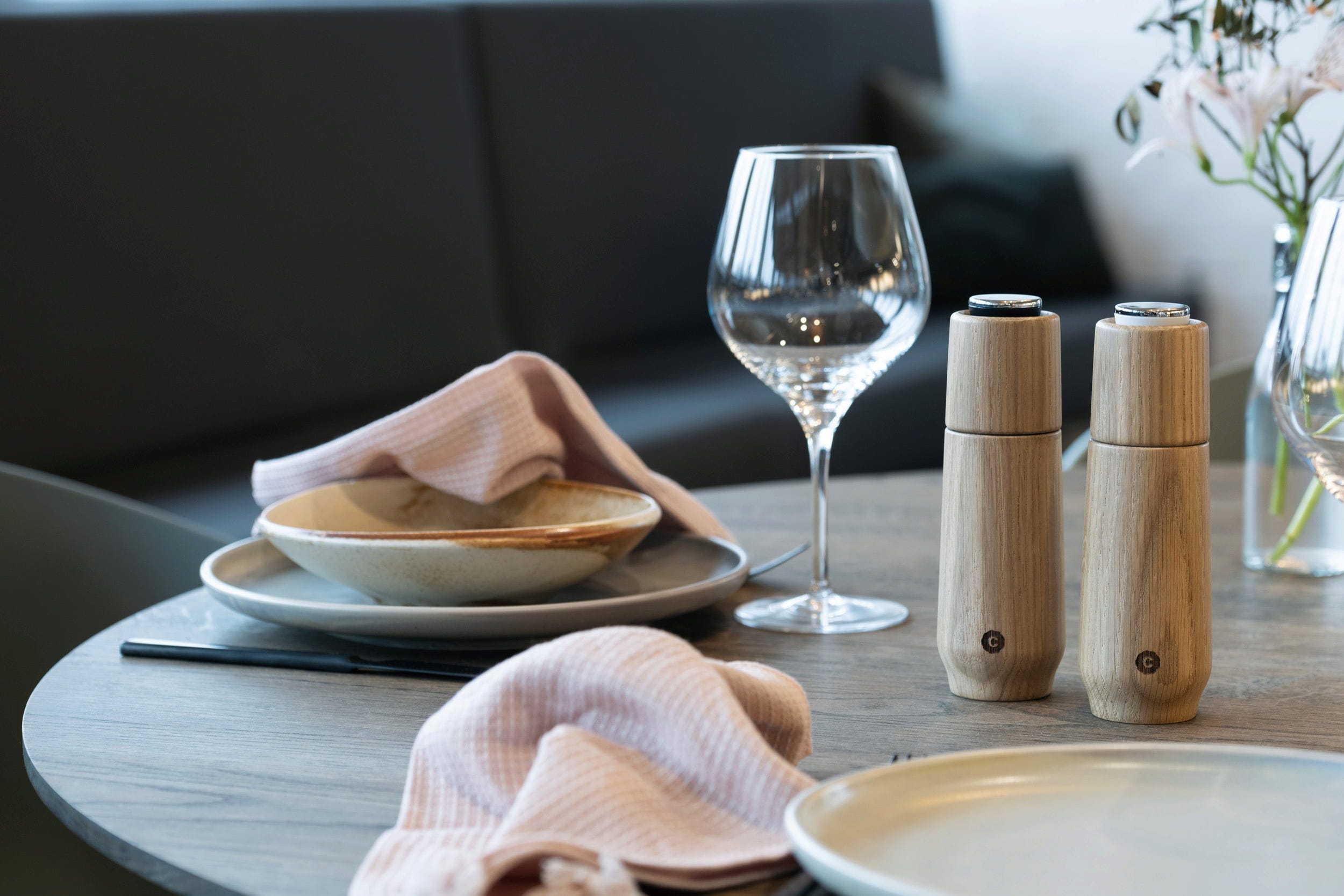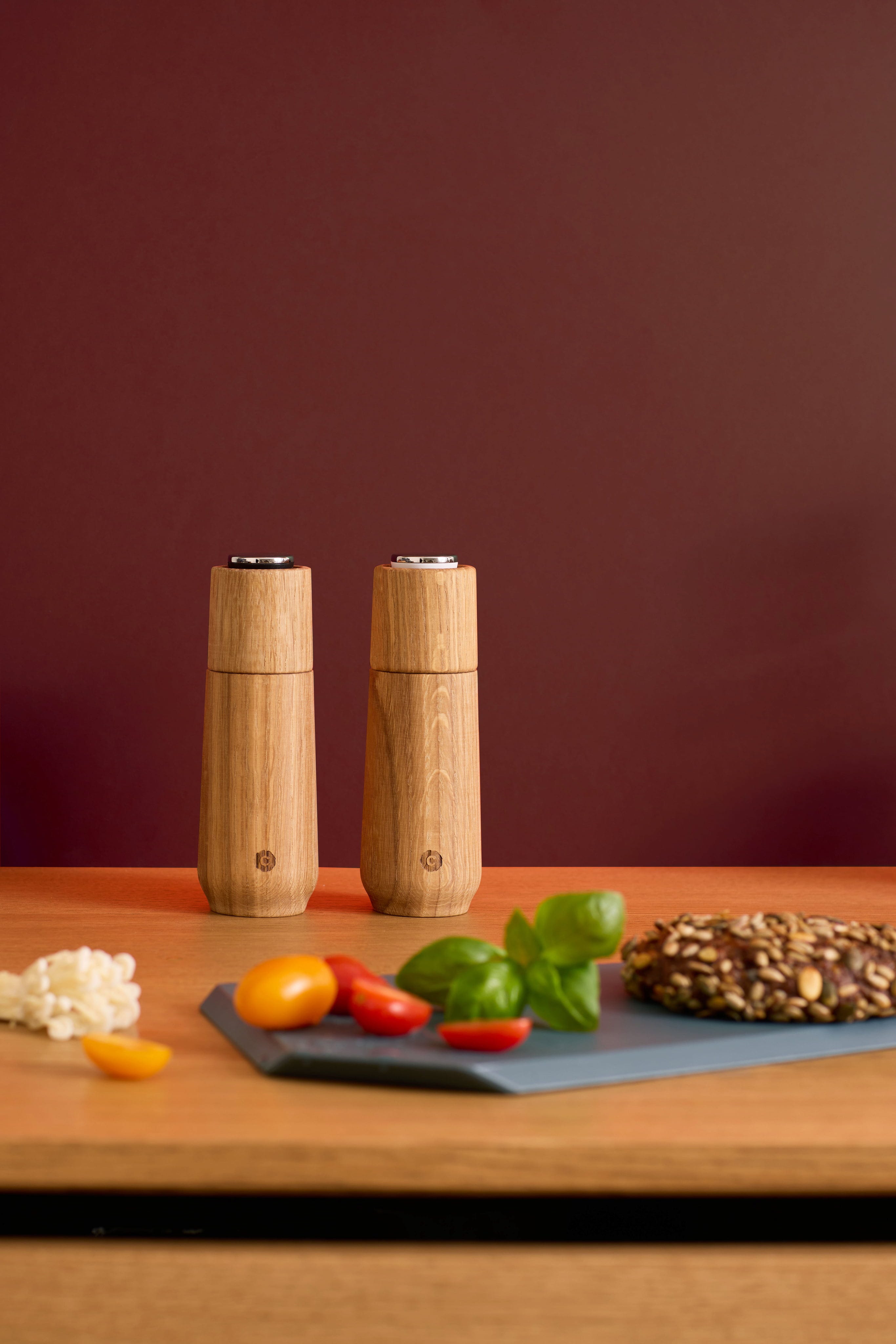 Zestaw Champagne wnosi luksusową elegancję i najwyższą precyzję bezpośrednio na nakryty stół. Zainspirowane smukłą sylwetką kieliszka do szampana, te dwa młynki łączą wysokiej jakości drewno dębowe z certyfikatem FSC ze szlachetnymi elementami ze stali nierdzewnej. Dzięki umieszczonemu u góry mechanizmowi mielącemu problem rozsypanych przypraw na obrusie odchodzi w zapomnienie, a bezstopniowo regulowany ceramiczny mechanizm mielący zapewnia doskonałe rezultaty. Aby uzupełnić zawartość, wystarczy odwrócić młynek i zdjąć praktyczny korek – szybko, czysto i bez wysiłku. Dzięki imponującej wysokości 18 cm ten duet to nie tylko funkcjonalne narzędzie, ale także prawdziwy element designerski do Twojego domu.