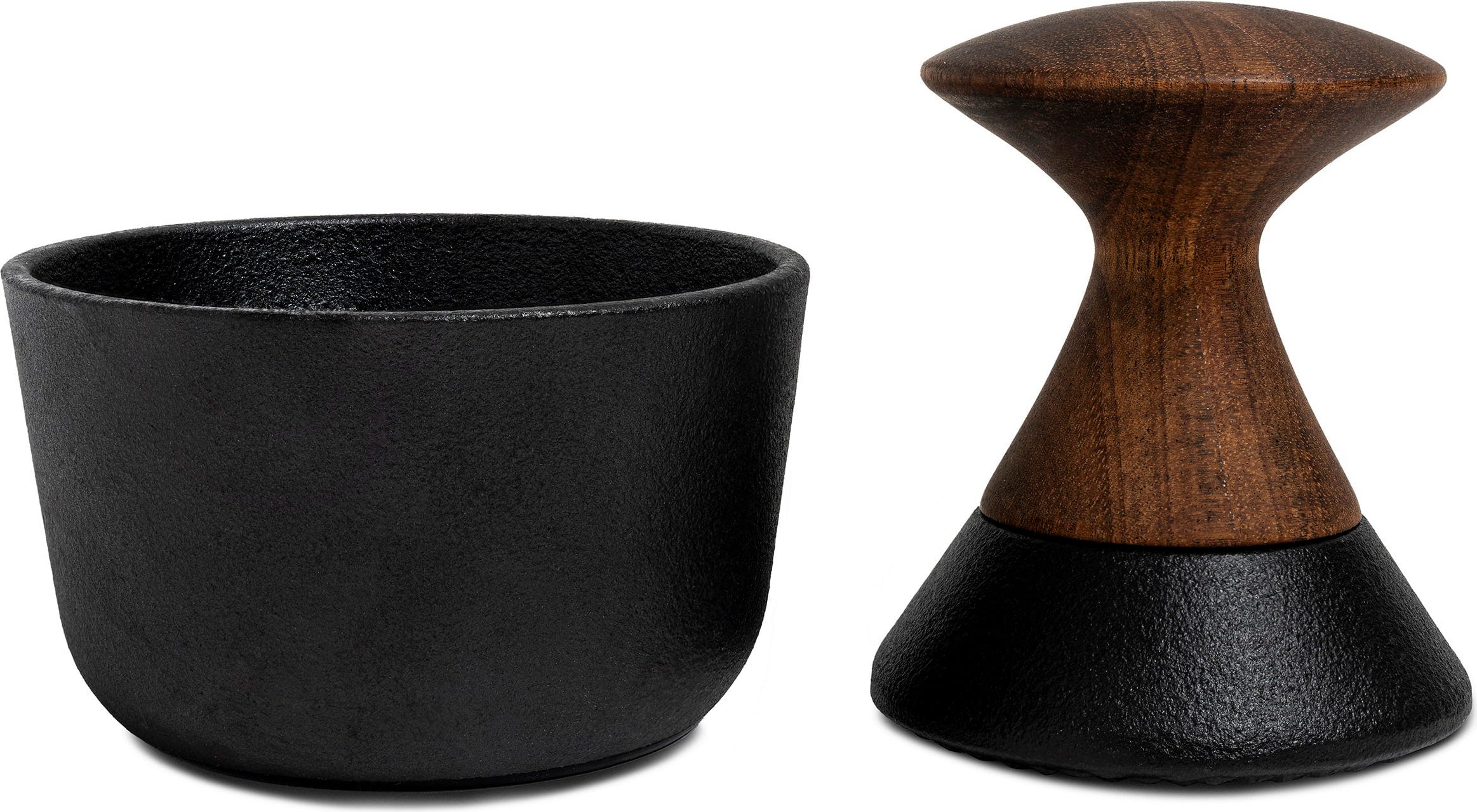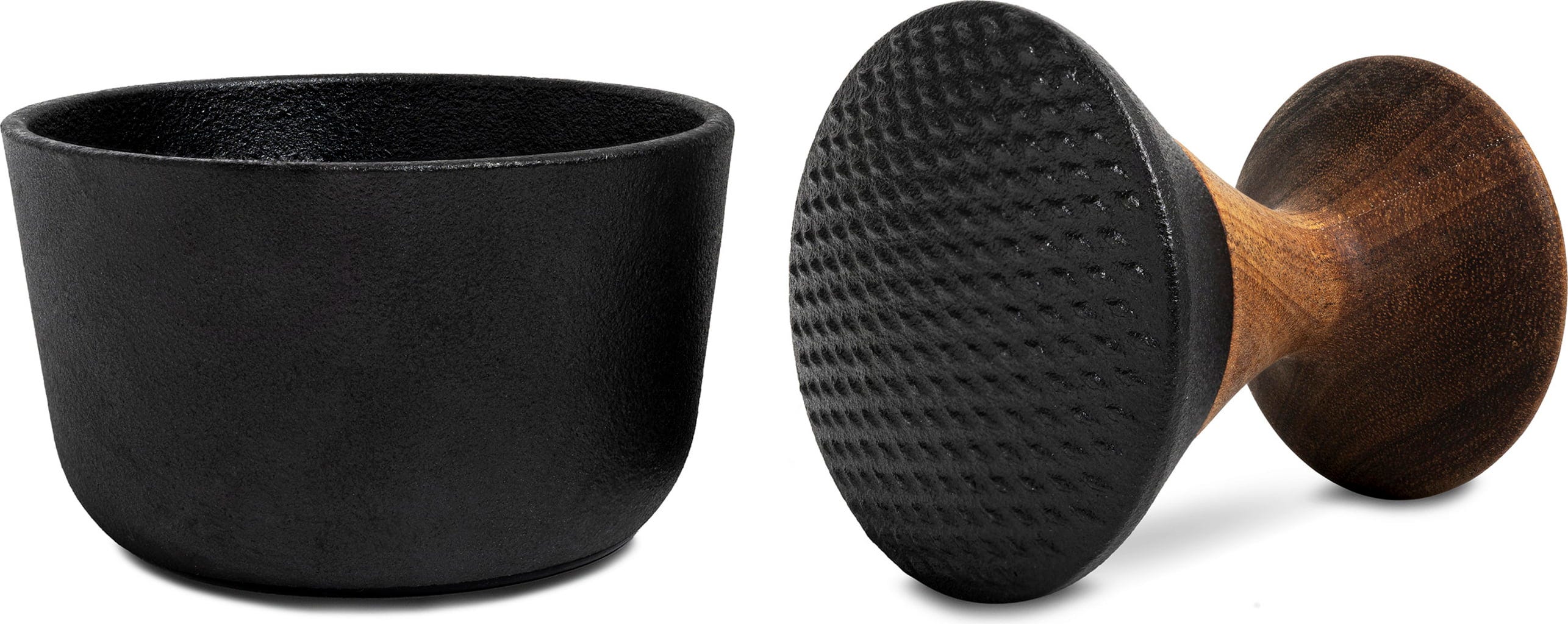 Moździerz Kiruna wnosi wyjątkową stabilność i czystą estetykę na Twoją powierzchnię roboczą. Wykonany z trwałego żeliwa, dzięki przemyślanemu profilowi wewnętrznemu umożliwia niezwykle efektywne rozdrabnianie suchych przypraw w zaledwie kilka sekund. Ergonomiczny tłuczek z drewna akacjowego naturalnie i wygodnie leży w dłoni. Dzięki zintegrowanemu silikonowemu pierścieniowi na spodzie moździerz pozostaje zawsze stabilny na swoim miejscu, jednocześnie chroniąc powierzchnie. To autentyczny i funkcjonalny element wyposażenia, który w tradycyjny sposób uwalnia pełnię aromatu składników.