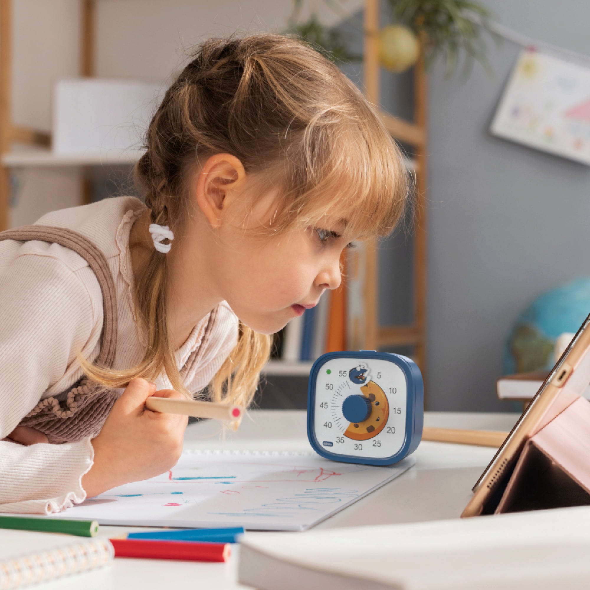 Uczyń zarządzanie czasem dziecinnie prostym i wprowadź więcej struktury do codzienności. Dzięki Visual Timer abstrakcyjne pojęcie czasu staje się wreszcie namacalne: wystarczy przekręcić pokrętło, aby ustawić wybrany czas do 60 minut. Kolorowa tarcza stopniowo znika wraz z upływem czasu, dzięki czemu zarówno dzieci, jak i dorośli mogą od razu zobaczyć, ile czasu pozostało na odrabianie lekcji, przerwy na zabawę czy czas przed ekranem.