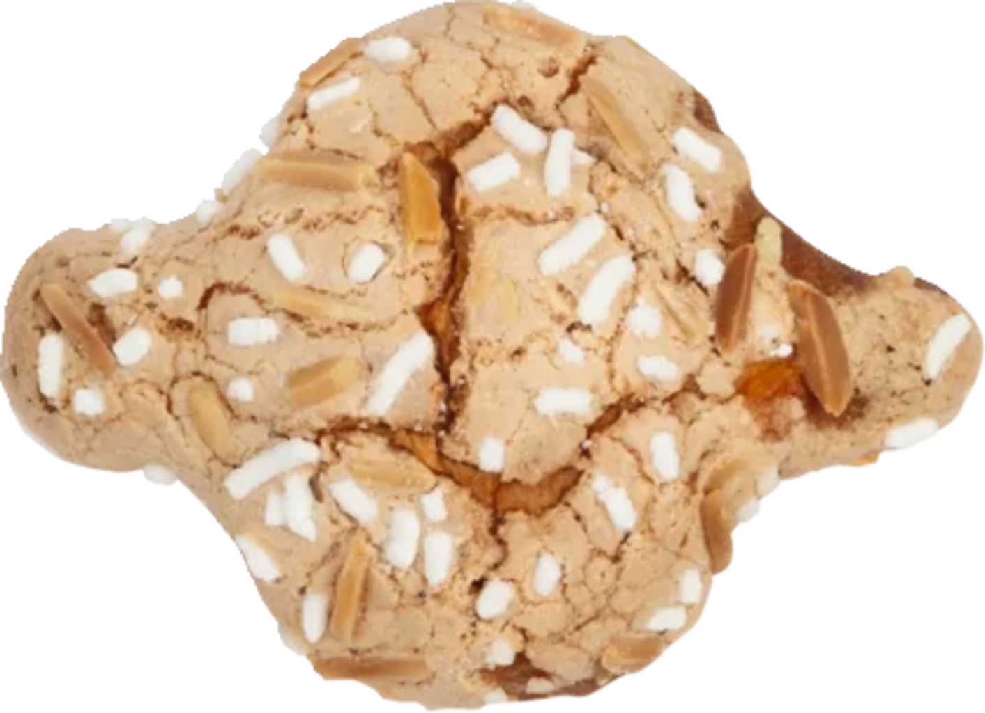 mąka pszenna, 22 % glazura (cukier, Białko jajka, mąka ryżowa, mąka migdałowa, mąka z orzechów laskowych, pasta z orzechów laskowych, skrobia ryżowa, olej słonecznikowy, naturalne aromaty), kandyzowana skórka pomarańczowa (skórka pomarańczy, syrop glukozowo-fruktozowy, cukier, regulator kwasowości (kwas cytrynowy)), Masło, jajka, cukier, żółtko, Zaczyn (mąka pszenna, woda), migdały, odwodnione mleko pełne w proszku, Emulgator, mono- i digliceridy kwasów tłuszczowych, Glukosesirup, masło kakaowe, naturalne aromaty, sól