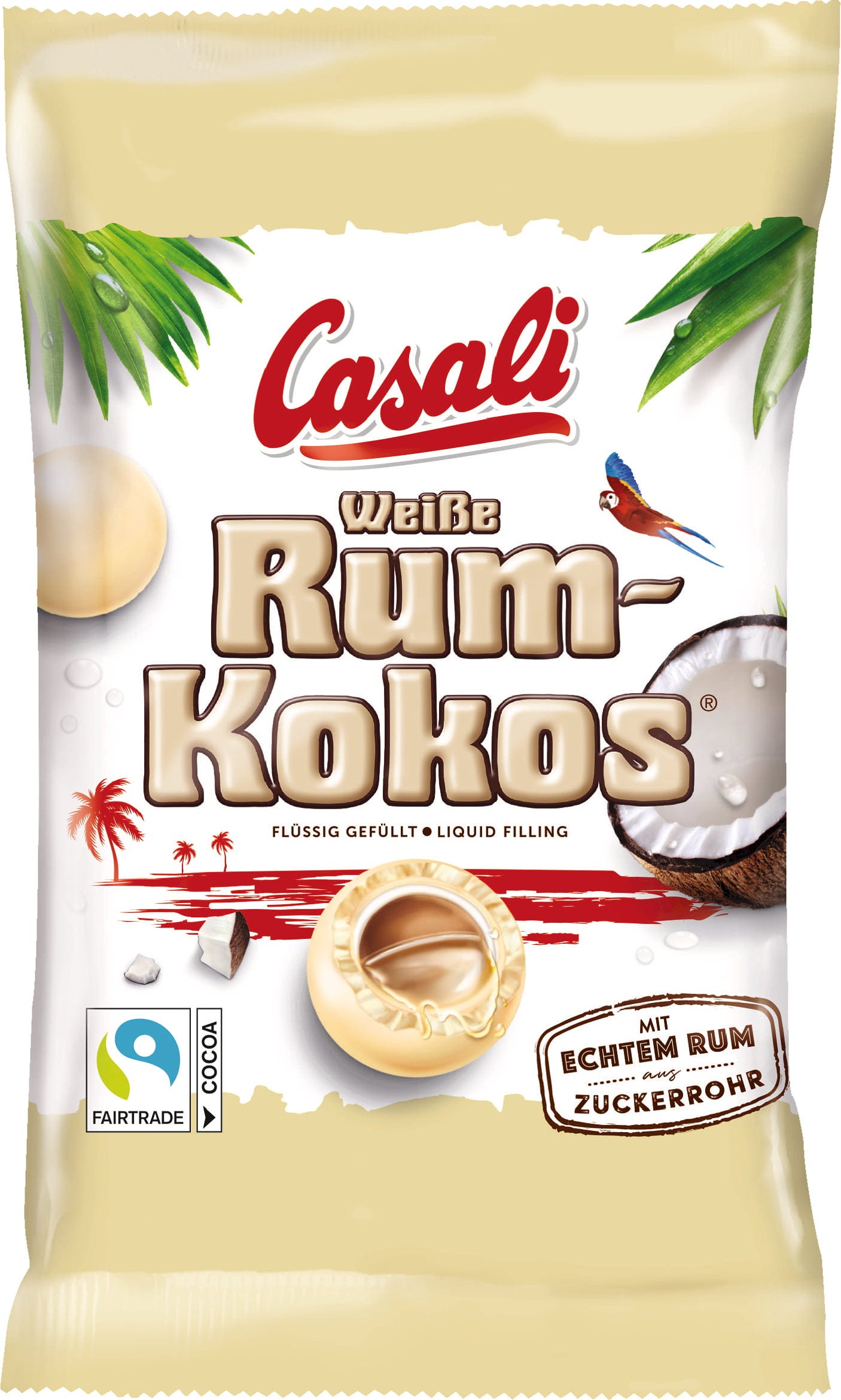 Klasyka w nowej odsłonie - Rum-Kokos Casali prezentuje swoje popularne kulki rumowe w białej czekoladzie i oferuje udaną reinterpretację klasycznej słodyczy z Austrii. Rdzeń płynnego rumu jest otoczony delikatnymi płatkami kokosowymi i grubą warstwą białej czekolady, tworząc niepowtarzalne doznania smakowe z nieodpartą karaibską atmosferą.
