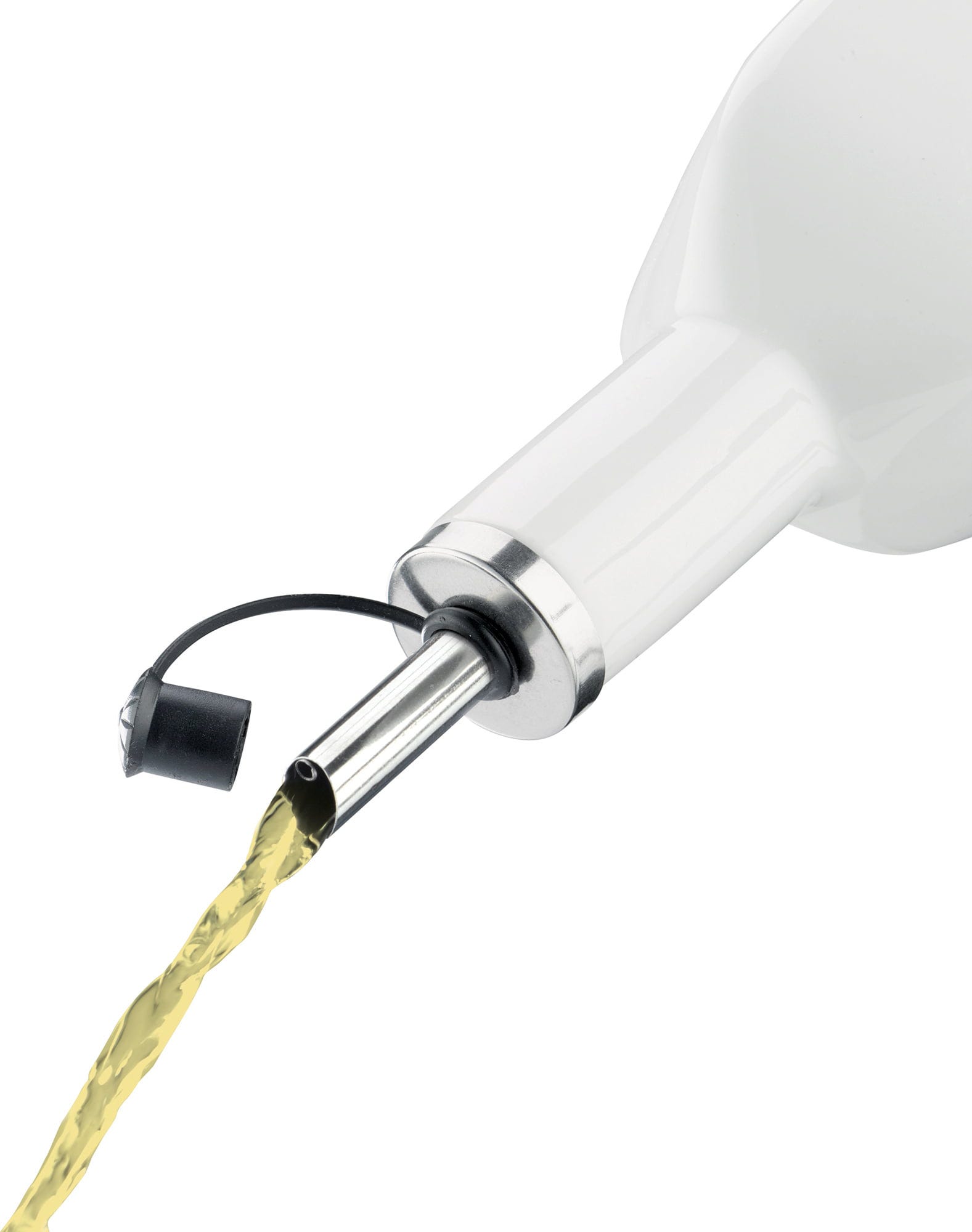 Butelka na oliwę cilio MEZZO to elegancki element przyciągający wzrok na każdym stole i niezastąpiony pomocnik w profesjonalnej kuchni. Chroni cenną zawartość przed światłem słonecznym i utratą smaku. Precyzyjna, specjalna wylewka zapewnia dokładne dozowanie bez kapania.