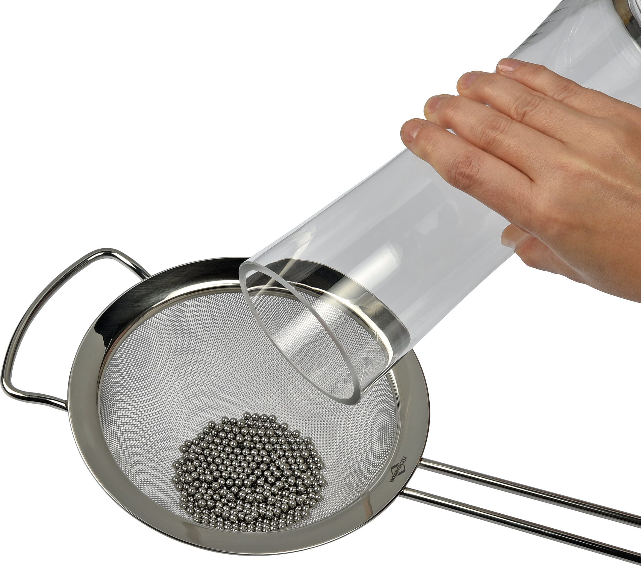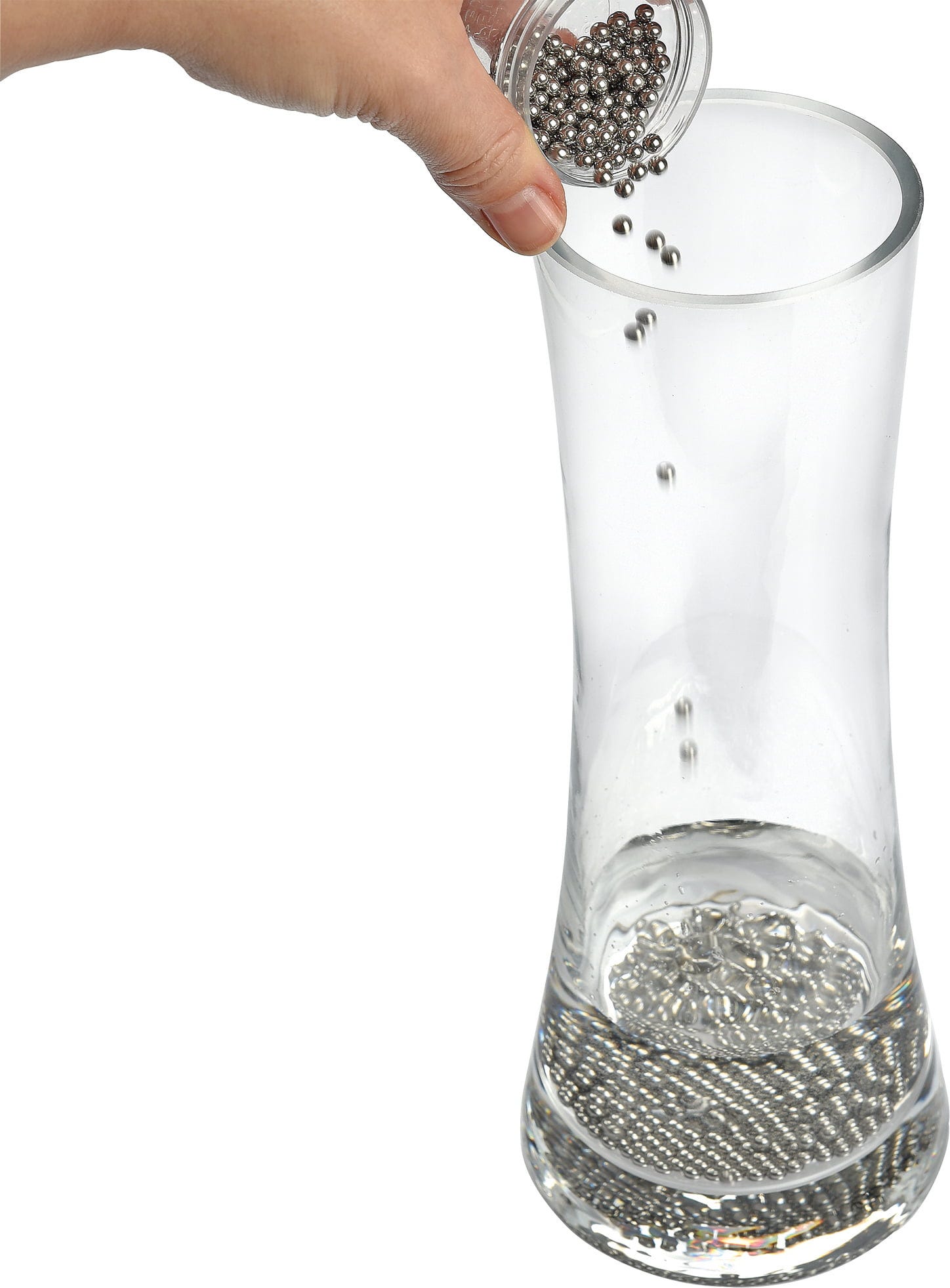 Dzięki kulkom czyszczącym EASY CLEAN wykonanym z wysokiej jakości stali nierdzewnej czyszczenie szklanych pojemników jest dziecinnie proste. Dzięki mechanicznemu tarciu małe kulki rozluźniają nawet uporczywe resztki wina lub osady wapienne w wazonach i butelkach ustawionych pod kątem. Zapewnia to higieniczną czystość w mgnieniu oka.