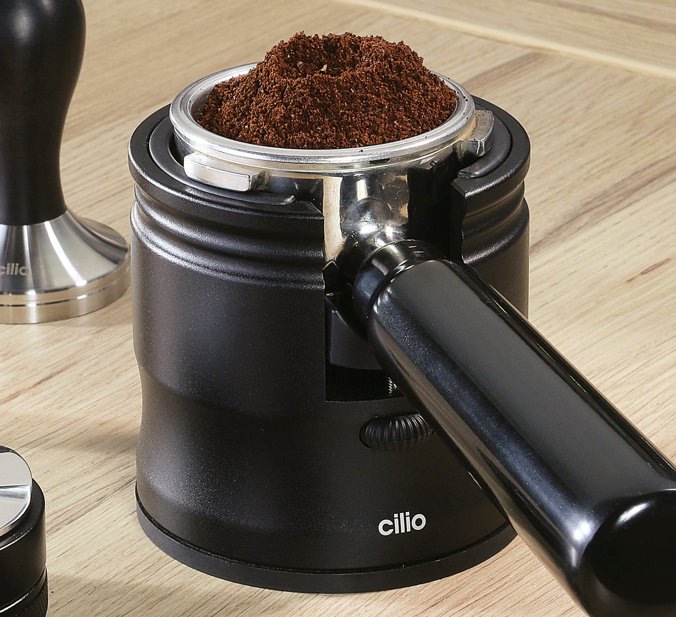 Zapewnij bezpieczną podstawę do przygotowania espresso. Stacja do ubijania cilio BARISTA jest idealnym partnerem dla portafiltra. Zapewnia niezawodne wsparcie podczas rozprowadzania, wyrównywania i ubijania, dzięki czemu nic się nie przesunie i nie zostanie uszkodzone. Stacja jest dostarczana z dwoma uchwytami o regulowanej wysokości i może być używana do portafiltrów 51, 54 i 58 mm.