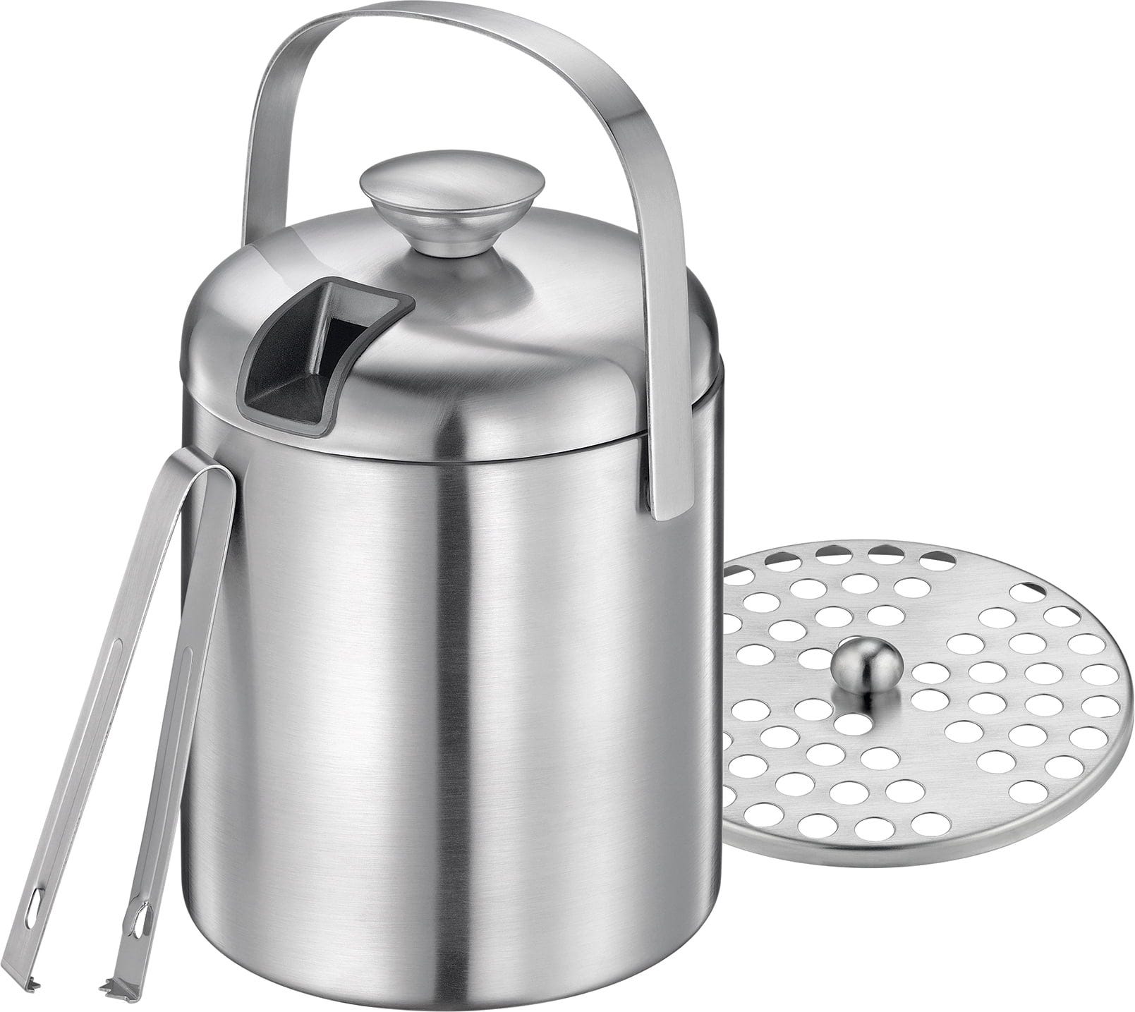 Kubełek na lód FREDDO jest idealnym towarzyszem długich wieczorów na tarasie lub uroczystych okazji w salonie. Jego dwuścienna konstrukcja ze stali nierdzewnej gwarantuje, że kostki lodu pozostaną zamrożone przez wiele godzin. Dzięki wyjmowanej kratce w podstawie kostki nie leżą w topniejącej wodzie i zachowują swój kształt znacznie dłużej. Praktyczne szczypce można przechowywać w pokrywie, aby zaoszczędzić miejsce.