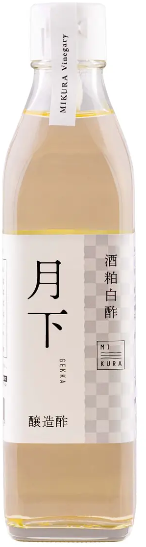 Powoli fermentowany w drewnianych beczkach, japoński Mikura Sakekasu - biały ocet ryżowy "Gekka" - jest wytwarzany z czerwonego dojrzałego sakekasu i alkoholu, a następnie delikatnie odbarwiany. Przezroczysty kolor i łagodny smak sprawiają, że ocet ten jest idealny do sushi, dressingów, marynat, pikli lub jako dodatek do tofu, pierogów i carpaccio.