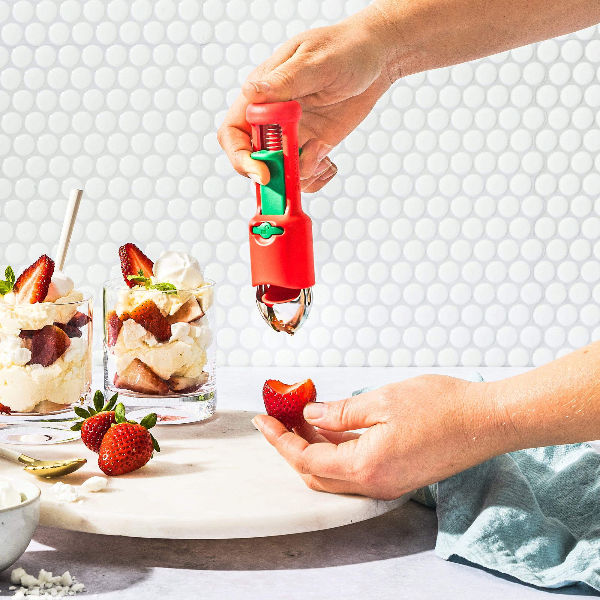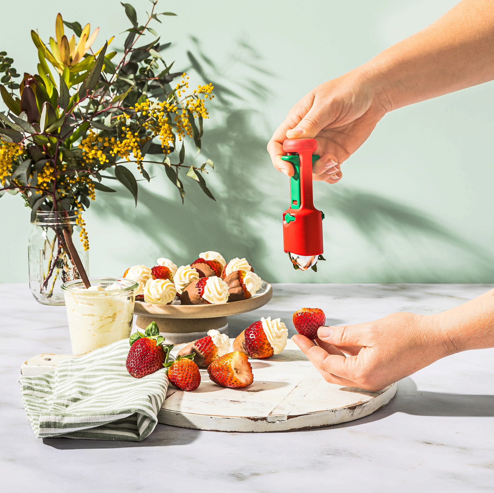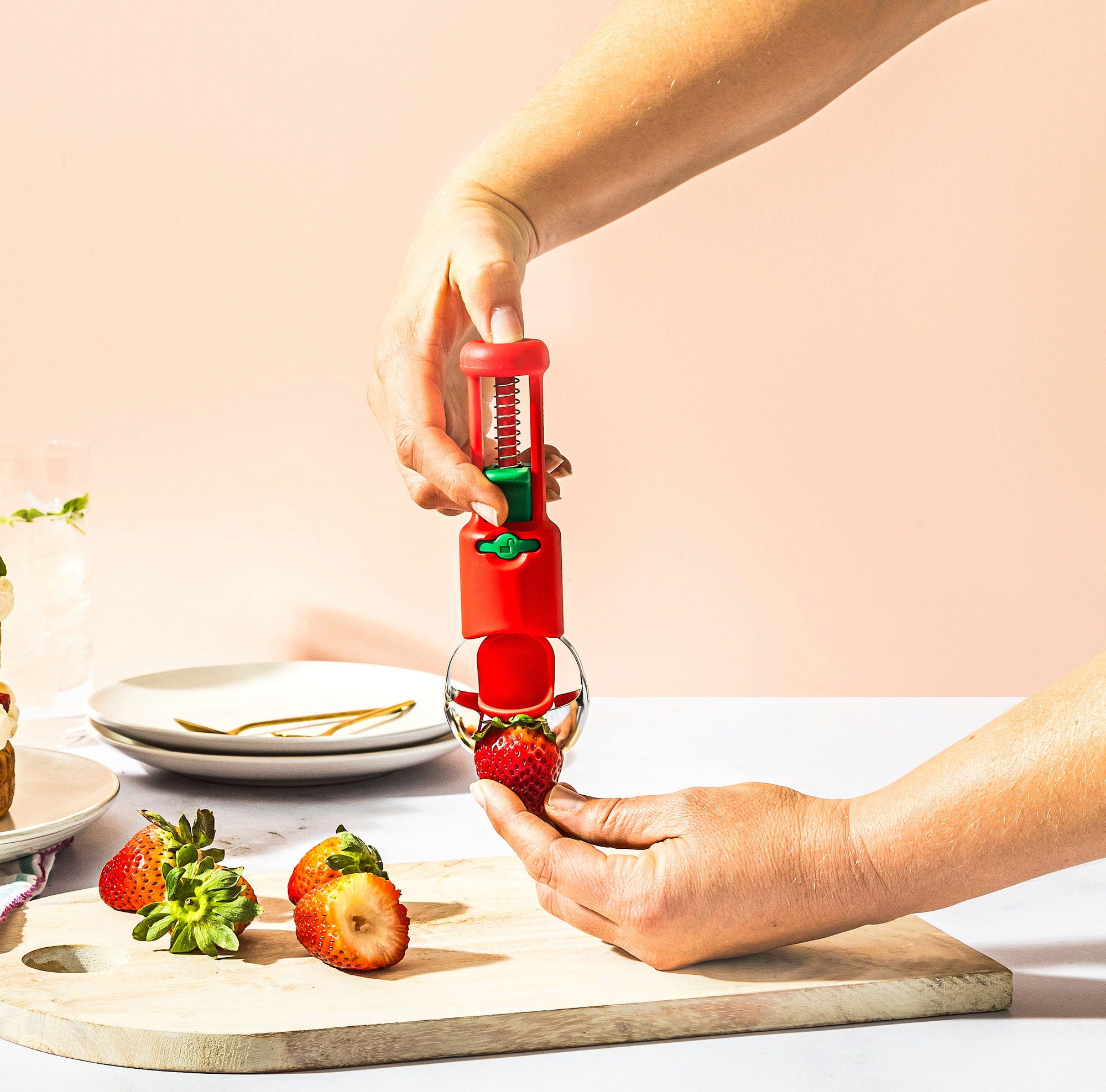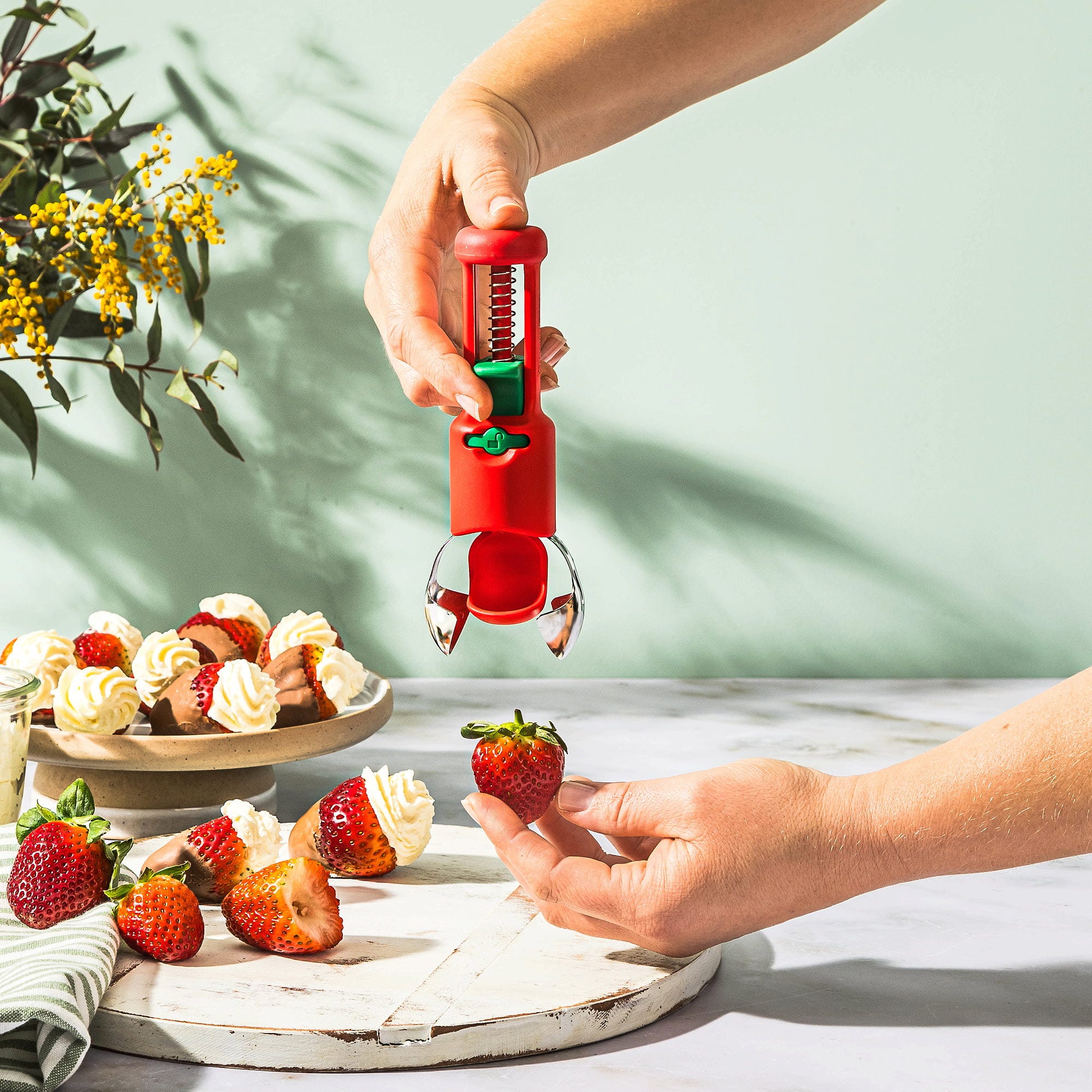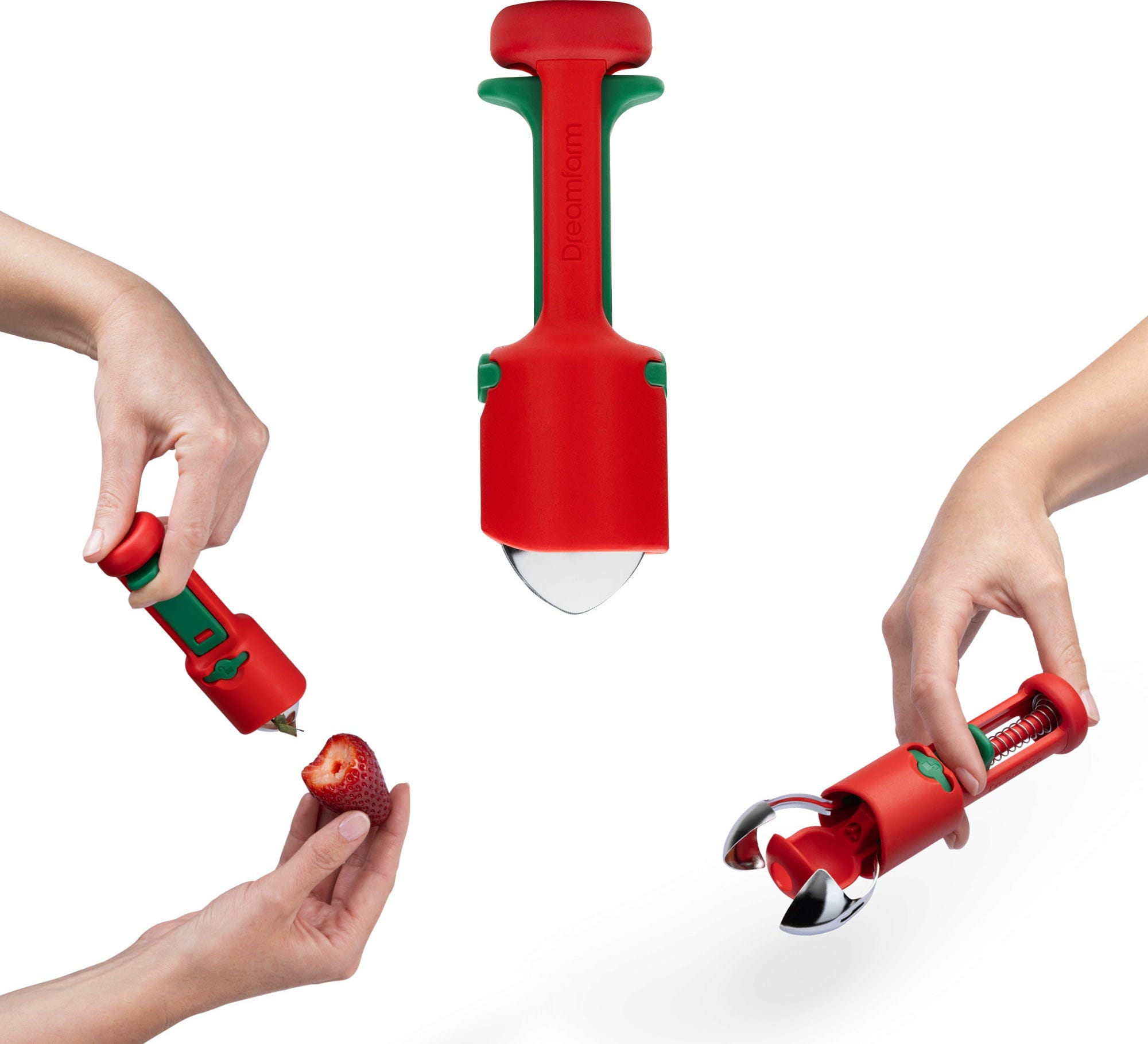 Dzięki Hullapit marki Dreamfarm zyskujesz genialną drylownicę 3-w-1, która sprawia, że uciążliwe usuwanie szypułek z truskawek staje się dziecinnie proste, a drylowanie wiśni czy oliwek odbywa się w mgnieniu oka. Dzięki precyzyjnym, stożkowym ostrzom ze stali nierdzewnej wyjątkowo czysto usuniesz nawet nieestetyczne brązowe punkty na owocach, podczas gdy sprężynowy tłok kieruje pestki bezpośrednio do zintegrowanej komory zbiorczej.