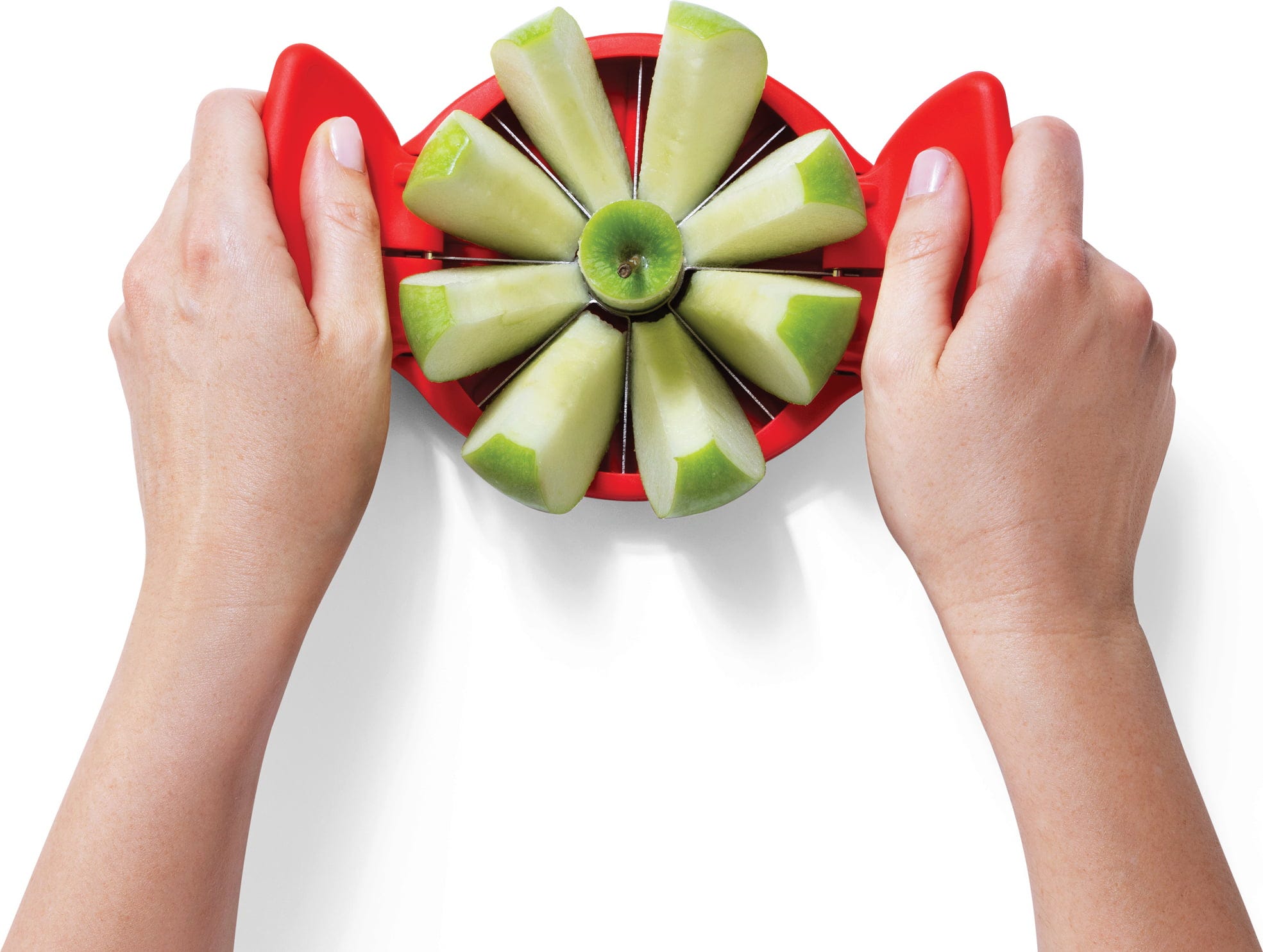 Dzięki krajalnicy do jabłek Flapple firmy Dreamfarm można pokroić jabłka dowolnej wielkości na osiem równych plasterków w jednym prostym kroku, a rdzeń jest starannie usuwany! Dzięki praktycznej podstawie, ostre ostrza ze stali nierdzewnej nie dotykają podłoża, więc nie potrzebujesz nawet deski do krojenia.