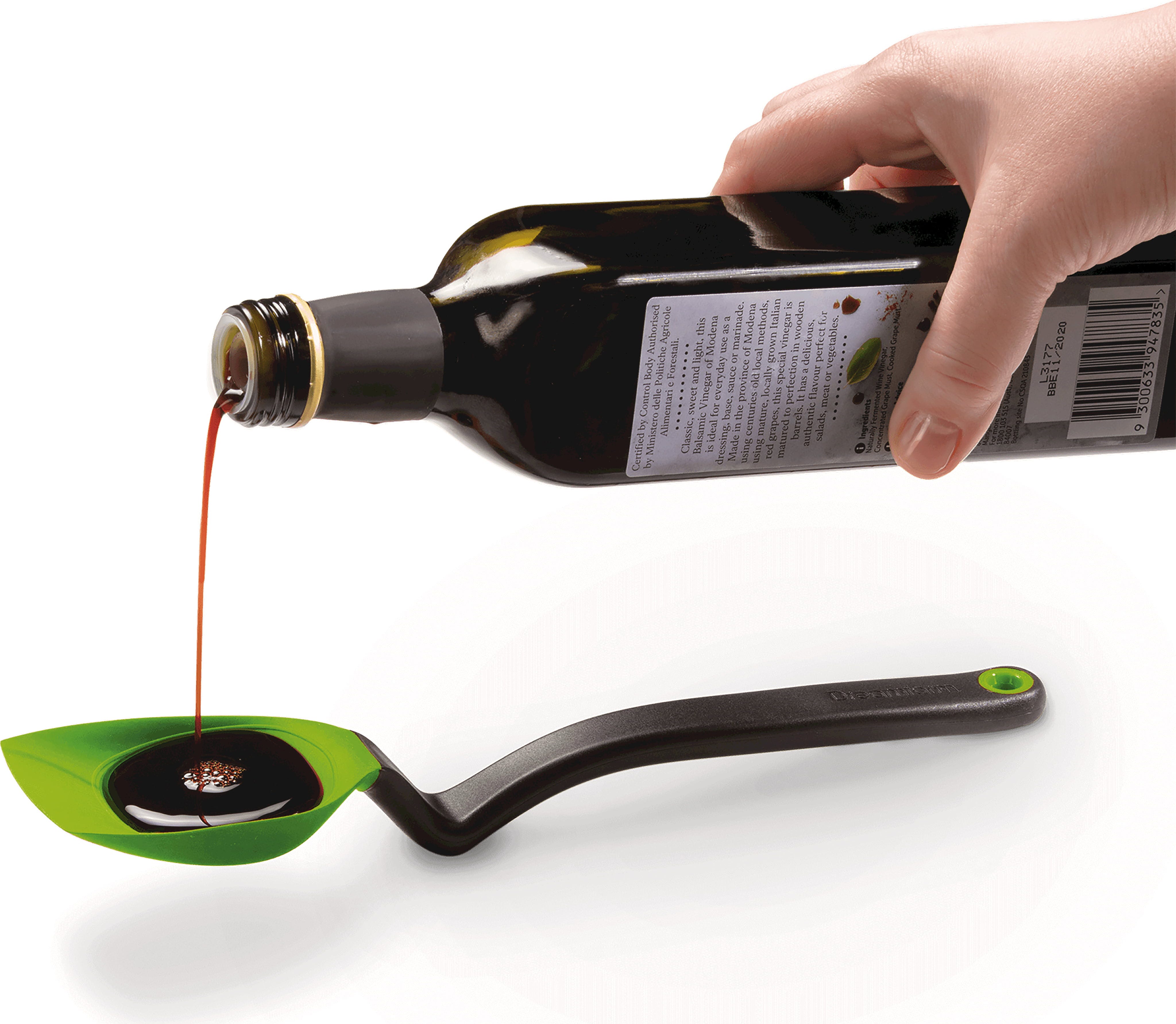 Dzięki zintegrowanemu wygięciu, główka łyżki zawsze unosi się nad blatem, umożliwiając jej czyste odłożenie bez pozostawiania plam. Alternatywnie, można ją po prostu zawiesić bezpośrednio na krawędzi garnka. Zintegrowana miarka pozwala na precyzyjne odmierzenie 15 ml (jednej łyżki stołowej), a Supoon jest odporna na temperaturę do 260°C.