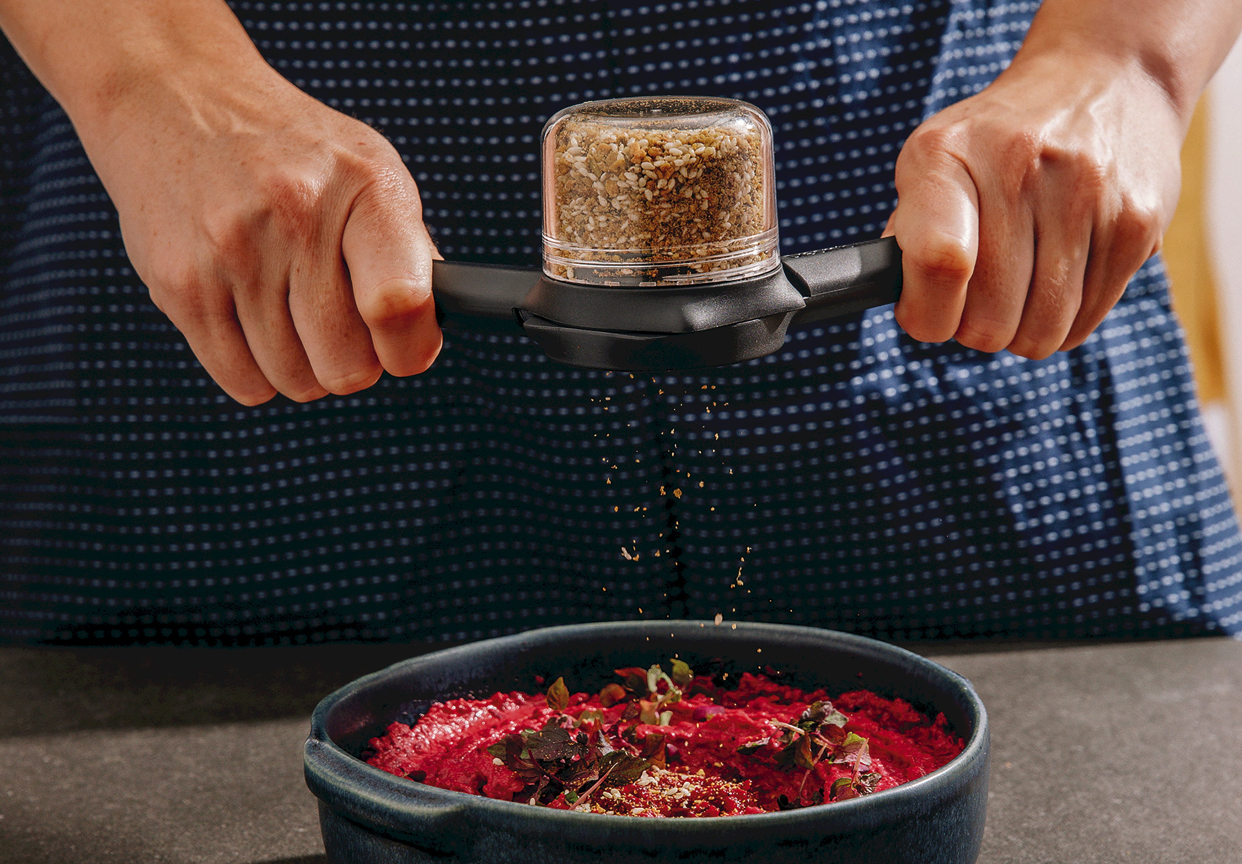 Dzięki nadającemu się do mycia w zmywarce szklanemu pojemnikowi, który nie zawiera BPA, z szerokim otworem i płaską podstawą, napełnianie jest dziecinnie proste. Niezależnie od tego, czy chodzi o szybkie przyprawianie w międzyczasie, czy o duże ilości na stole - ten gadżet wykonany z wytrzymałego tworzywa sztucznego zawsze zapewnia doskonały rezultat!