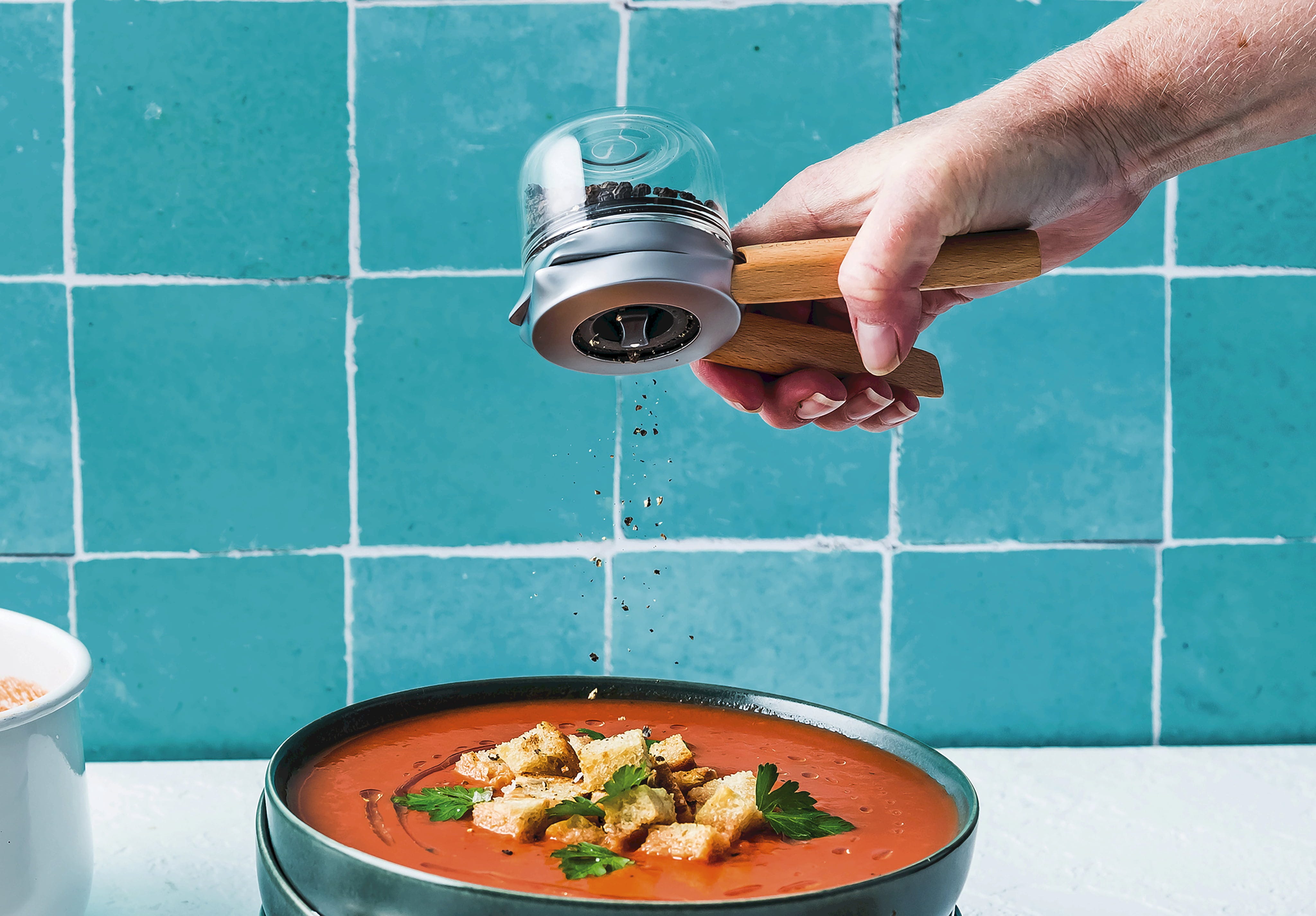 Niezwykle ostry ceramiczny młynek jest w pełni regulowany z 6 ustawieniami od bardzo drobnego do grubego, nie rdzewieje i nadaje się do prawie wszystkich przypraw i nasion. Szczególnie dobrze przemyślany: dzięki kątowej konstrukcji i wardze zbierającej okruchy powierzchnia robocza pozostaje czysta po odłożeniu. Uchwyty z prawdziwego drewna bukowego sprawiają, że Ortwo przyciąga wzrok w każdej kuchni.