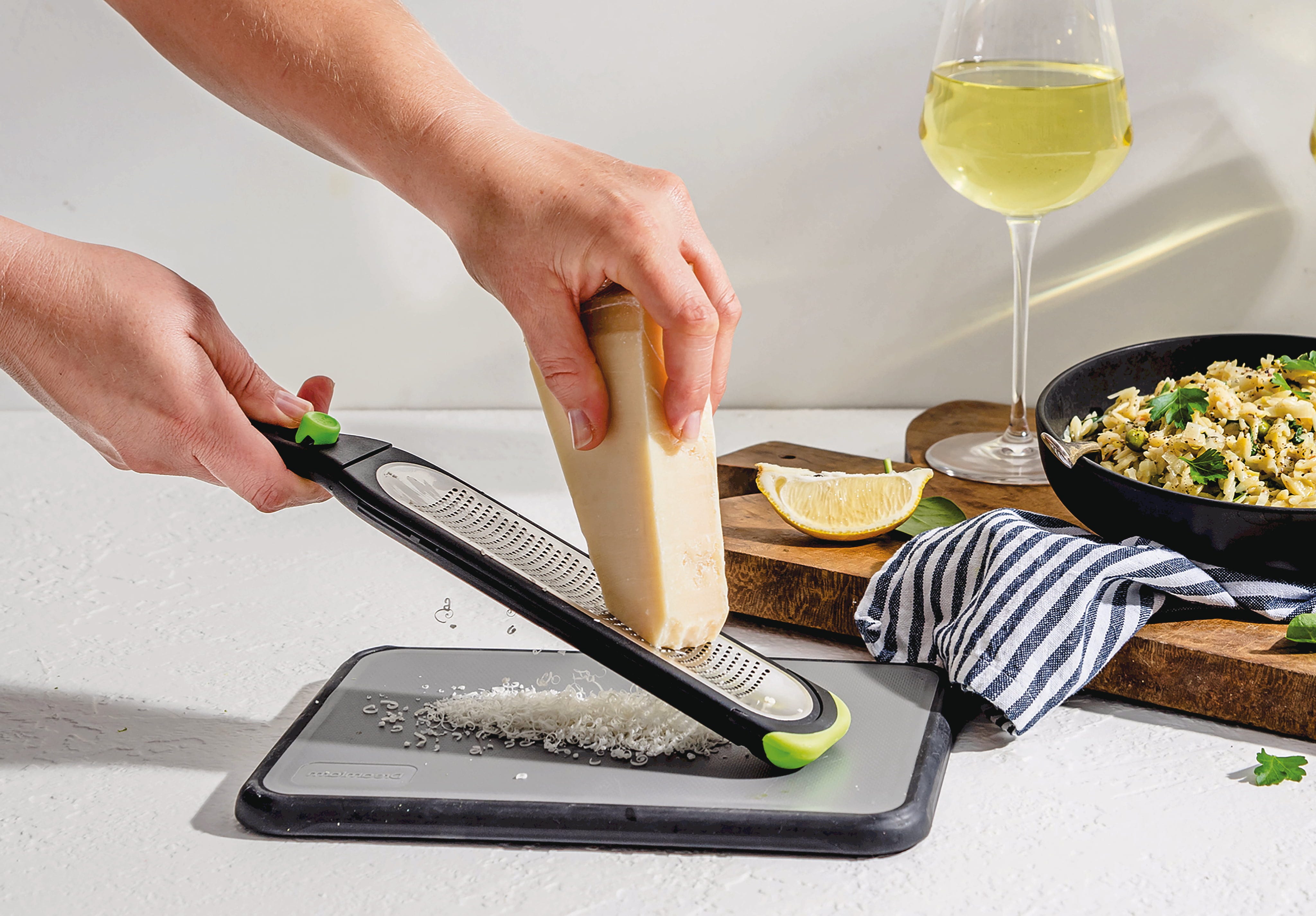 Dodaj najdelikatniejszą skórkę do swoich potraw w mgnieniu oka, bez cennych resztek przywierających do tarki! Tarka Ozest Fine od Dreamfarm zachwyca 441 ostrymi jak brzytwa, wytrawionymi zębami i wklęsłym kształtem, który bezpiecznie prowadzi startą żywność na środku.