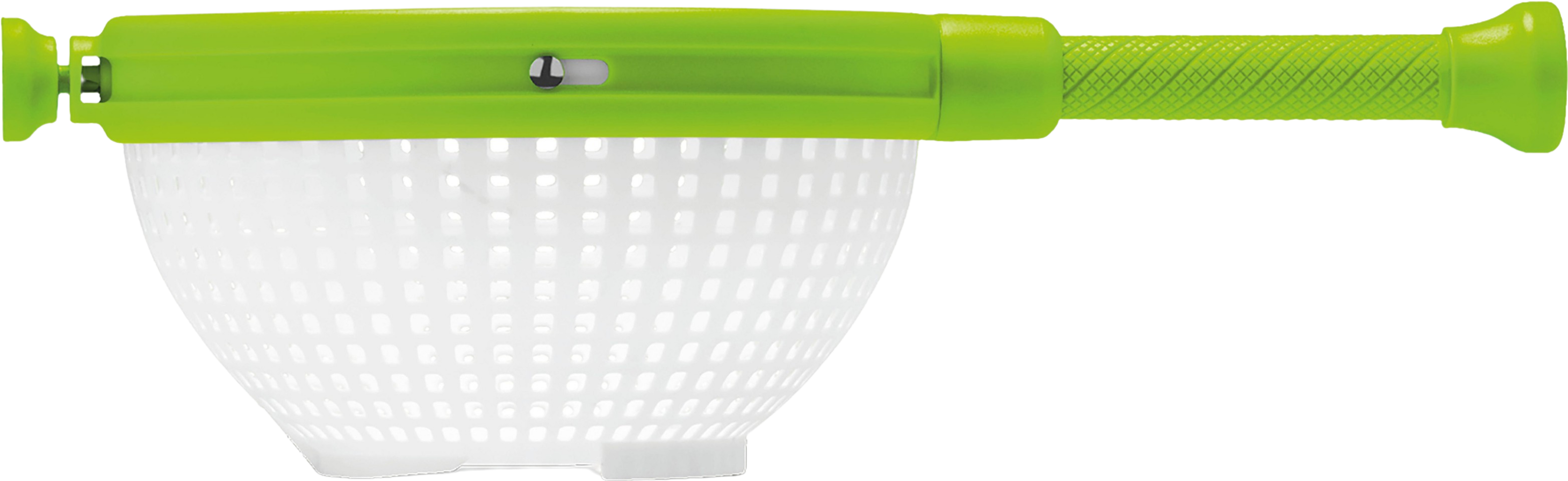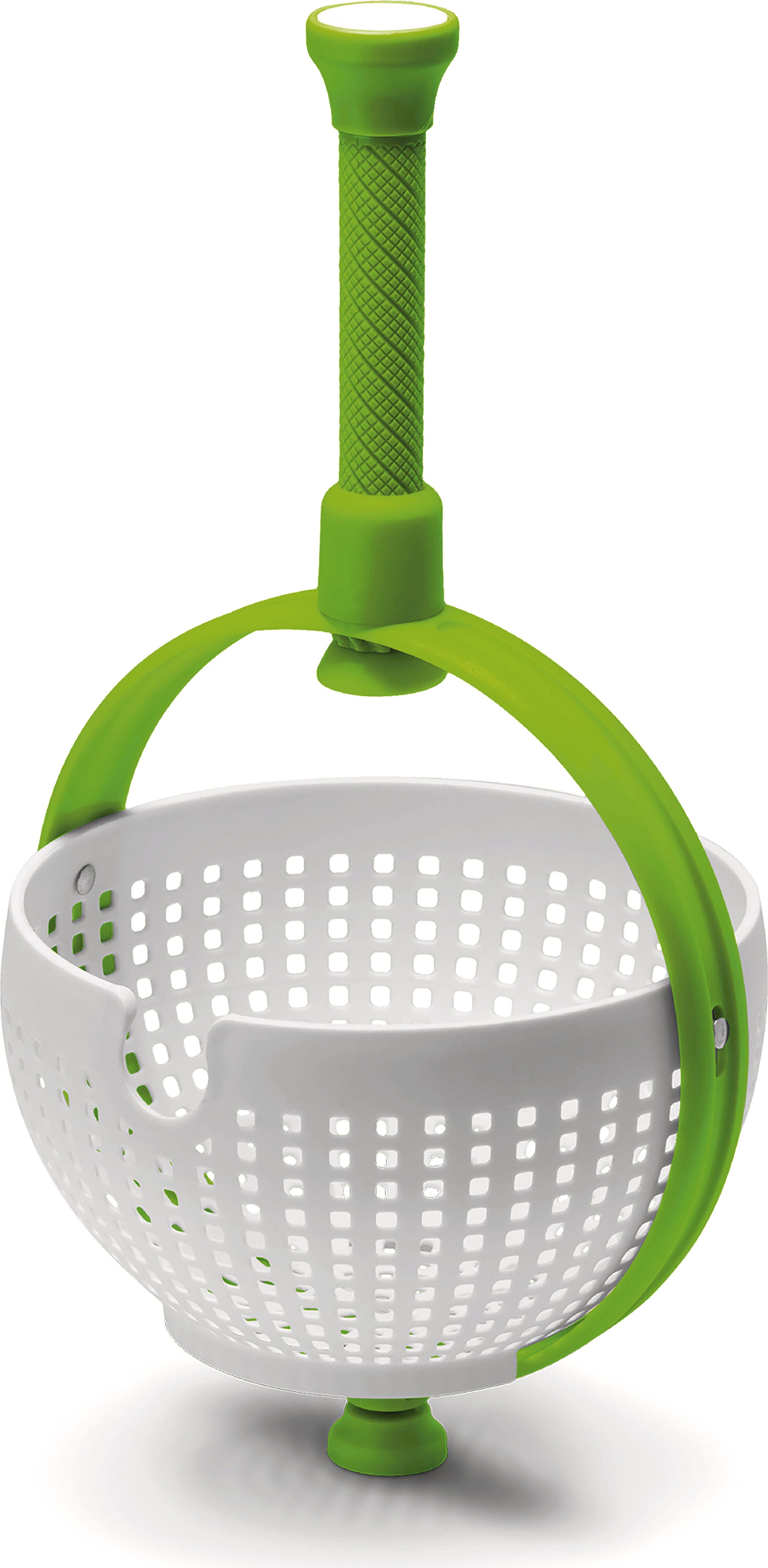 Wirówka do sałaty Spina od Dreamfarm to pomysłowe urządzenie 2 w 1, które doskonale łączy w sobie funkcję durszlaka i suszarki. Dzięki antypoślizgowej podstawie można wirować sałatkę, warzywa lub owoce bezpośrednio w zlewie z najwyższą prędkością, a wystające boki gwarantują, że zawartość pozostanie w misce.