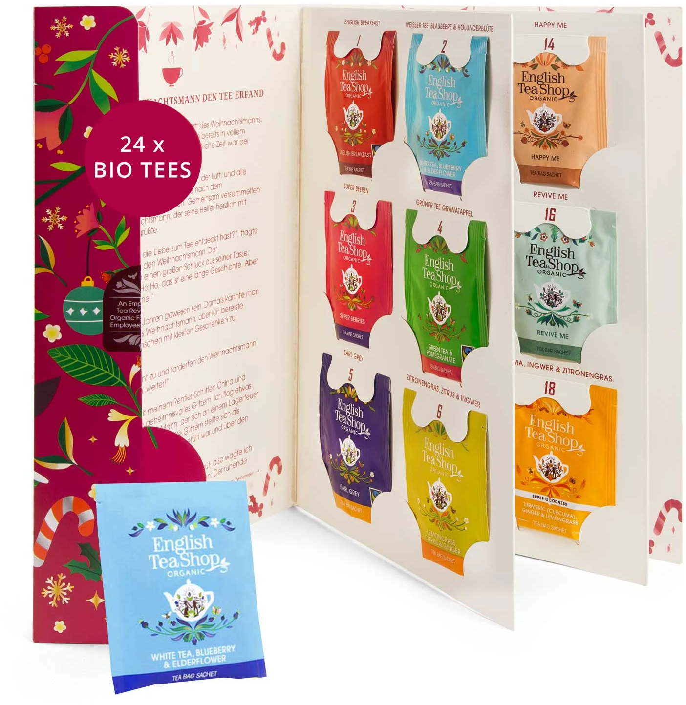 English Tea Shop Bio Kalendarz adwentowy z herbatą "Świąteczna opowieść", 24 torebki herbaty (42 g)