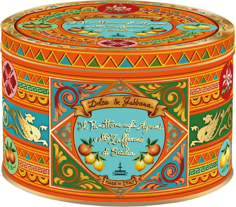 Kolekcja Fiasconaro Panettone od Dolce & Gabbana owija klasyczne ciasto na zakwasie, które jest zwykle spożywane w okresie Bożego Narodzenia, w elegancką, ekskluzywną "sukienkę": Metalowe pudełko o niezwykłym, kolorowym designie zamienia klasyczne ciasto we wspaniały prezent, bez żadnego papieru do pakowania!