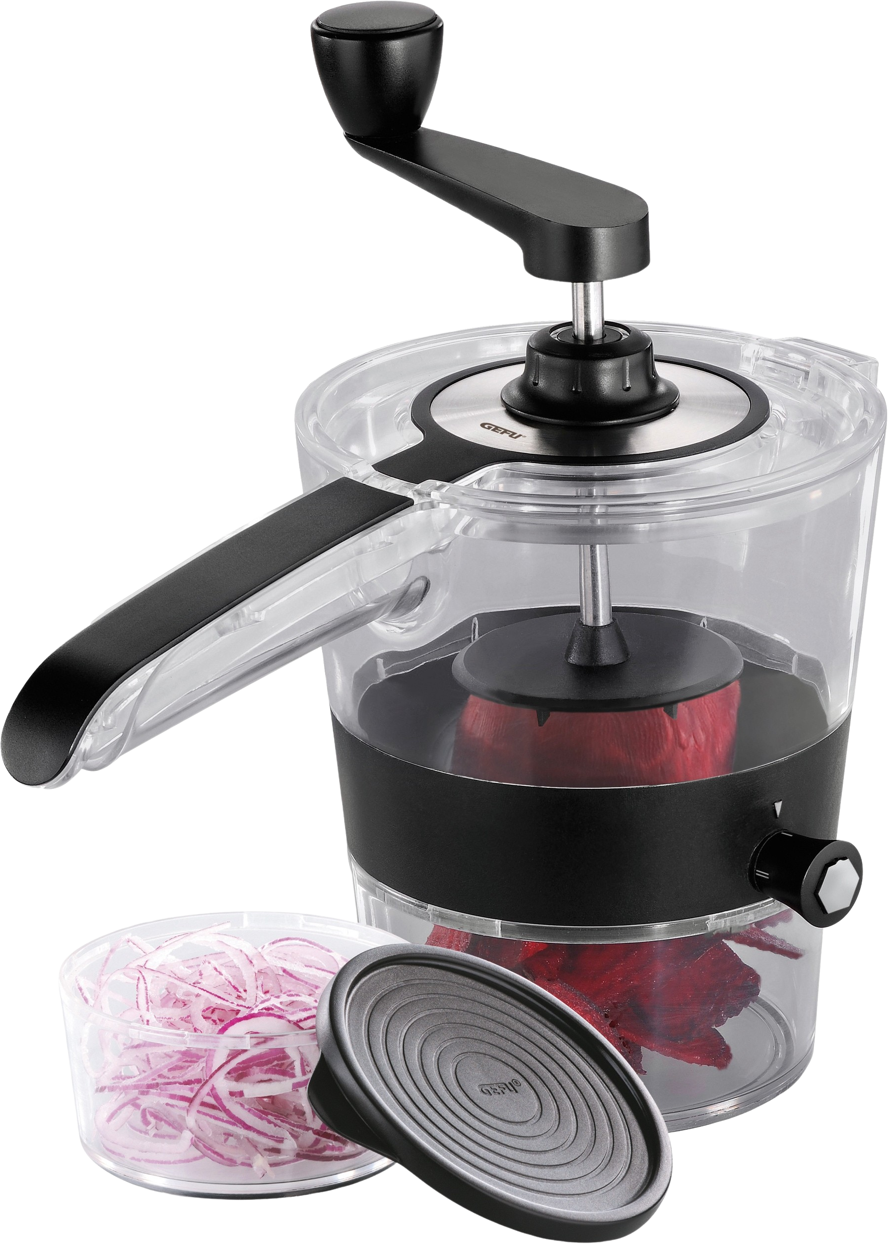 Niezależnie od tego, czy chcesz uzyskać wąskie kształty tagliatelle z cukinii, czy szerokie spirale warzywne z ziemniaków, kalarepy lub buraków, wszystko jest możliwe. Można nawet przetwarzać duże warzywa o średnicy do 10 cm! Dzięki bardzo ostrym ostrzom wykonanym ze specjalnej stali, rezultaty krojenia są zawsze na najwyższym poziomie. Obsługa jest dziecinnie prosta: ustaw szerokość cięcia, włóż warzywa, zamocuj korbę i zacznij kręcić korbą - posiekane jedzenie zostanie prawie całkowicie przetworzone. A ponieważ porządek jest ważny w kuchni, SPIRALFIX posiada antypoślizgowy pojemnik zbiorczy o pojemności 400 ml i praktyczną pokrywkę smakową, która służy również jako pojemnik do przechowywania żywności. Cały nóż, wykonany z wysokiej jakości tworzywa sztucznego i stali nierdzewnej, można łatwo wyjąć w celu wygodnego czyszczenia i można go myć w zmywarce.