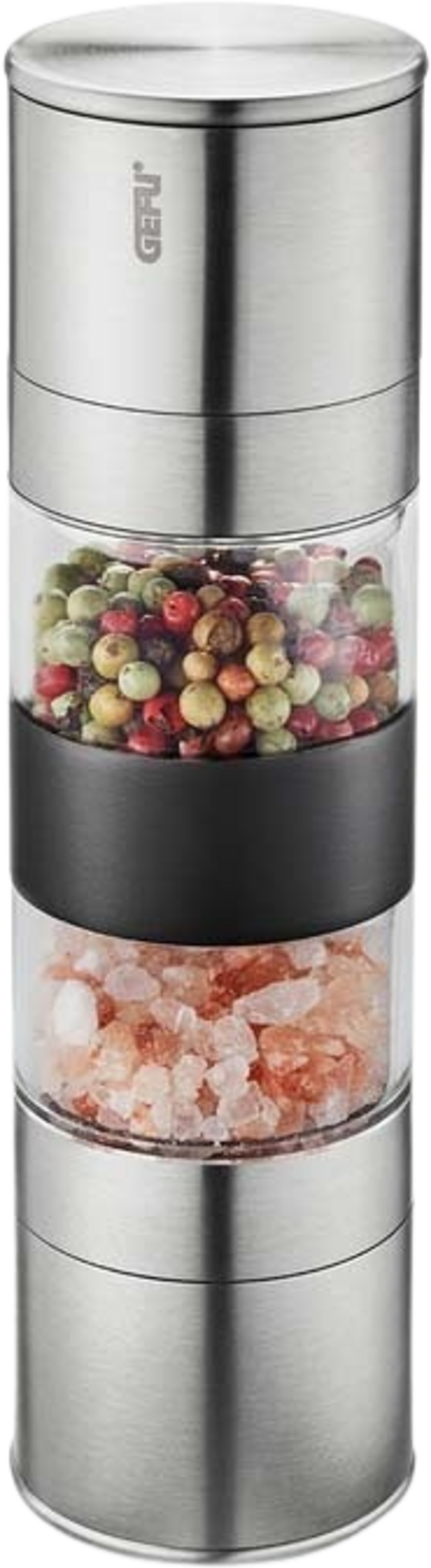 Szukasz eleganckiego i oszczędzającego miejsce rozwiązania do soli i pieprzu? Podwójny młynek LAMOLA łączy obie przyprawy w jednym stylowym urządzeniu! Wysokiej jakości ceramiczny młynek z płynną regulacją zapewnia zawsze idealne mielenie. Specjalna atrakcja: sprytne nasadki zatrzymujące aromat służą również jako małe płytki mielące. Zapobiega to przedostawaniu się wilgoci do młynka i utrzymuje świeżość przypraw na dłużej.
