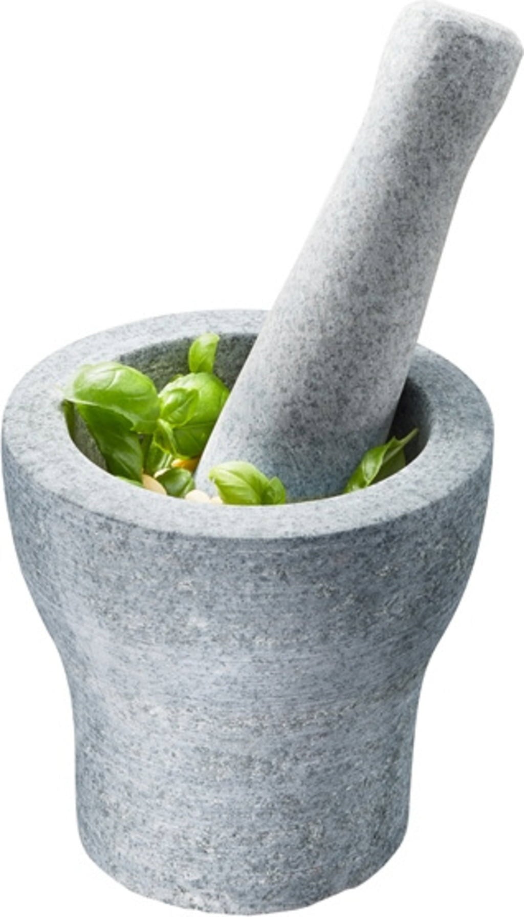 Moździerz granitowy VESTO to tradycyjne narzędzie kuchenne wykonane z litego naturalnego granitu, które pozwala doświadczyć przypraw i ziół w zupełnie nowy sposób. Świeżo zmielone składniki zachowują pełny, niezafałszowany smak - to doświadczenie, którego nie zapewni żaden wstępnie zmielony proszek!