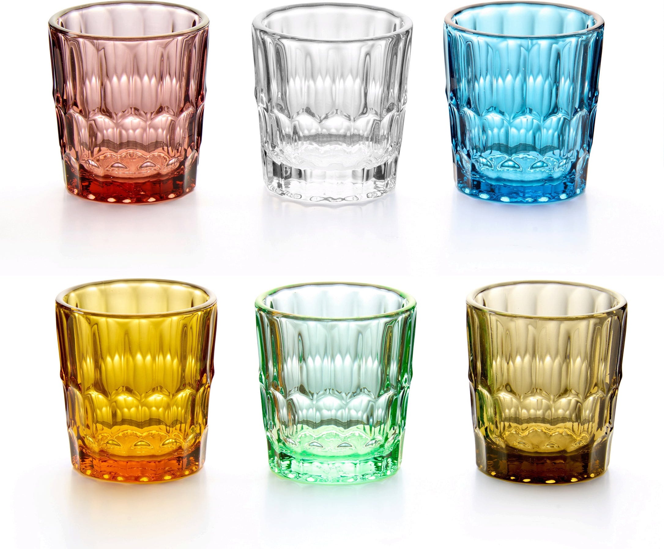 Zaproś odrobinę koloru na swoją kolejną imprezę! Ten zestaw sześciu ręcznie wykonanych kieliszków do shotów zachwyca swoją charakterystyczną fakturą i pięknymi, różnorodnymi odcieniami. Niezależnie od tego, czy będą idealnym digestifem po obiedzie, czy szybkim espresso, te małe dzieła sztuki będą prawdziwą ozdobą każdego stołu.