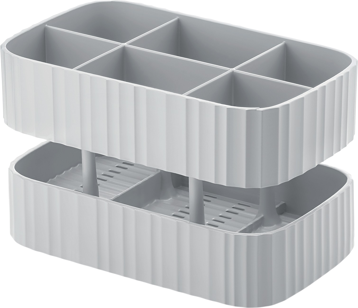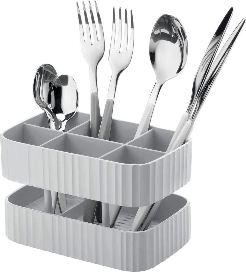 Pożegnaj się z chaosem wśród sztućców! Utrzymuj porządek w kuchni dzięki ociekaczowi na sztućce Drain & safe firmy guzzini. Ten praktyczny i kompaktowy pomocnik oferuje sześć oddzielnych przegródek i dwie różne wysokości. Pozwala to na łatwe oddzielenie noży, widelców i łyżek oraz utrzymanie porządku.