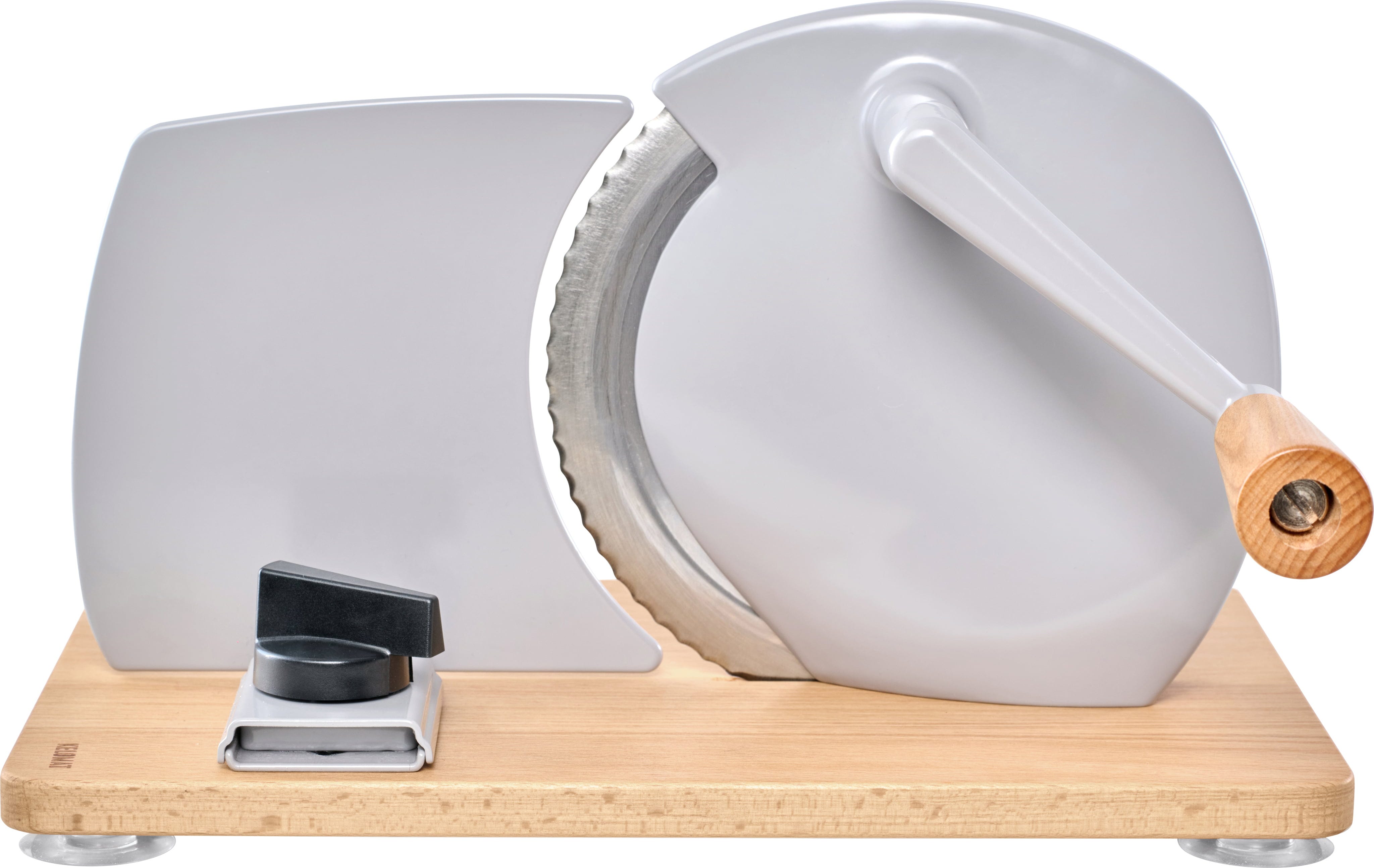Dzięki solidnym nóżkom z przyssawkami, krajalnica nie ślizga się, zapewniając bezpieczne użytkowanie. W razie potrzeby można użyć zacisku stołowego dla dodatkowej stabilności.