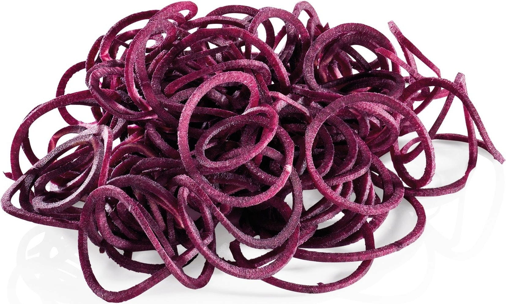 Wyjątkowo ostre ostrza praktycznej krajalnicy spiralnej firmy Küchenprofi w mgnieniu oka przekształcają marchewki, cukinie, rzodkiewki, ogórki itp. w "spaghetti". Idealna alternatywa dla tradycyjnego makaronu z dodatkową porcją witamin.
