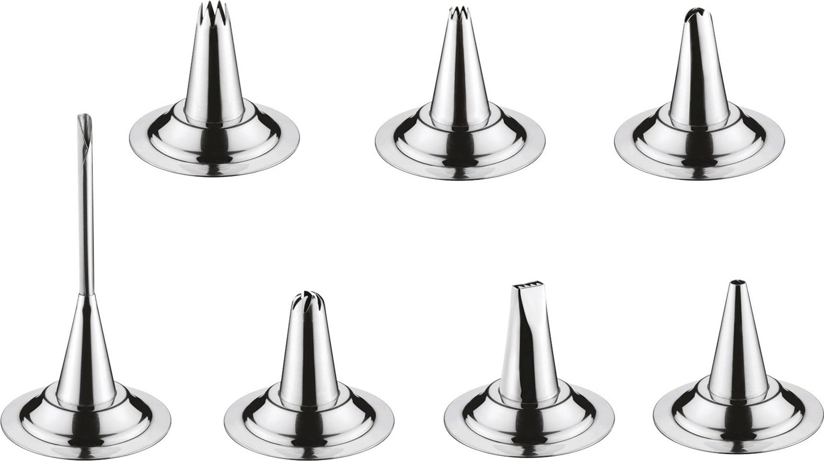 - 7 różnych dysz (np. gwiazda, róża, liście) Wygodna praca dzięki szybkiemu napełnianiu i płynnie działającemu tłoczkowi