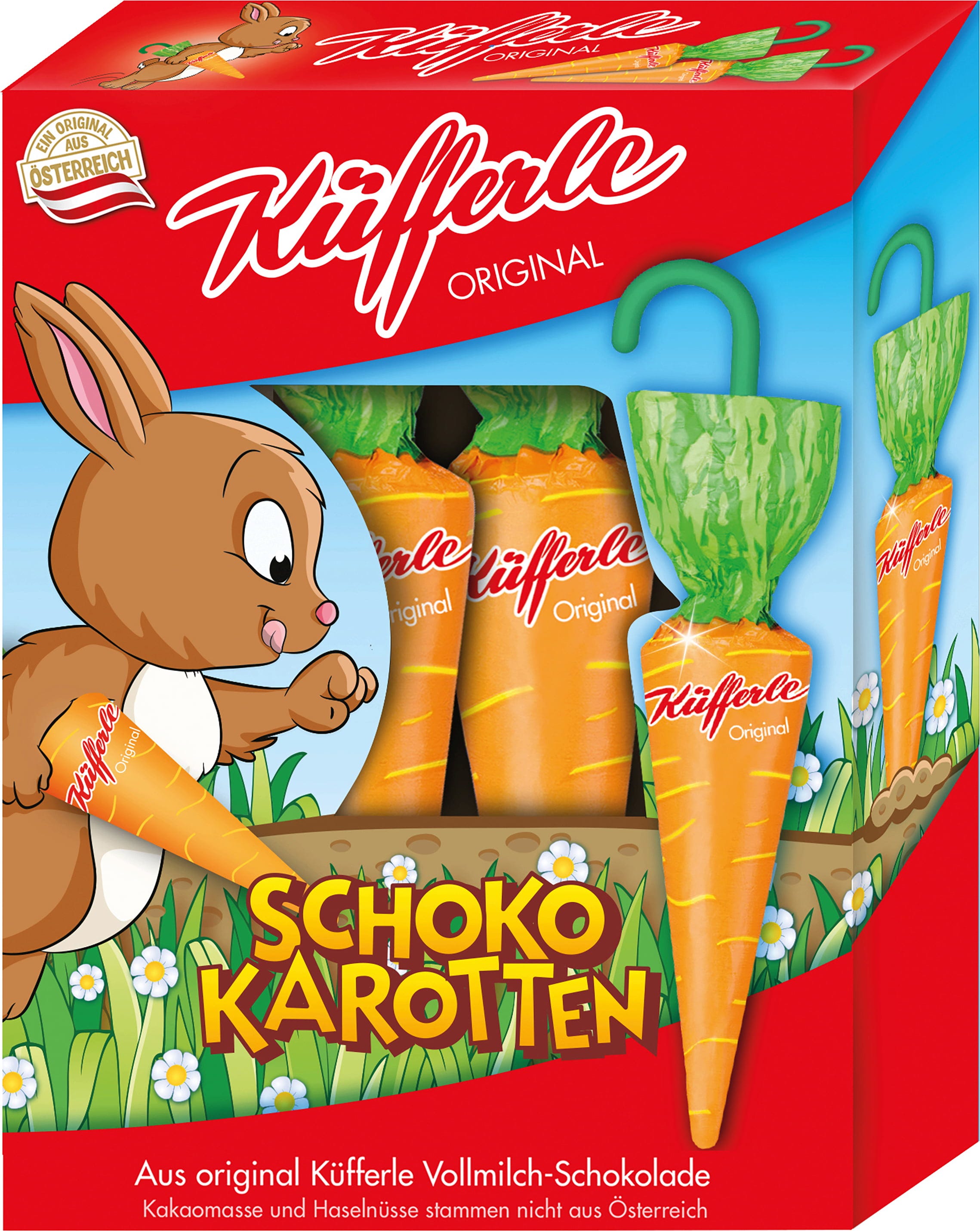 Czekoladowe marchewki Küfferle to prawdziwy klasyk do wielkanocnego koszyka! Doświadcz gładkiego, rozpływającego się smaku oryginalnej mlecznej czekolady, która nie tylko świetnie wygląda, ale także fantastycznie smakuje. Niezależnie od tego, czy użyjesz ich jako uroczego prezentu dla przyjaciela, czy ukryjesz je jako słodką niespodziankę między kolorowymi jajkami - te małe przysmaki sprawią, że świętowanie Wielkanocy będzie wyjątkowe!
