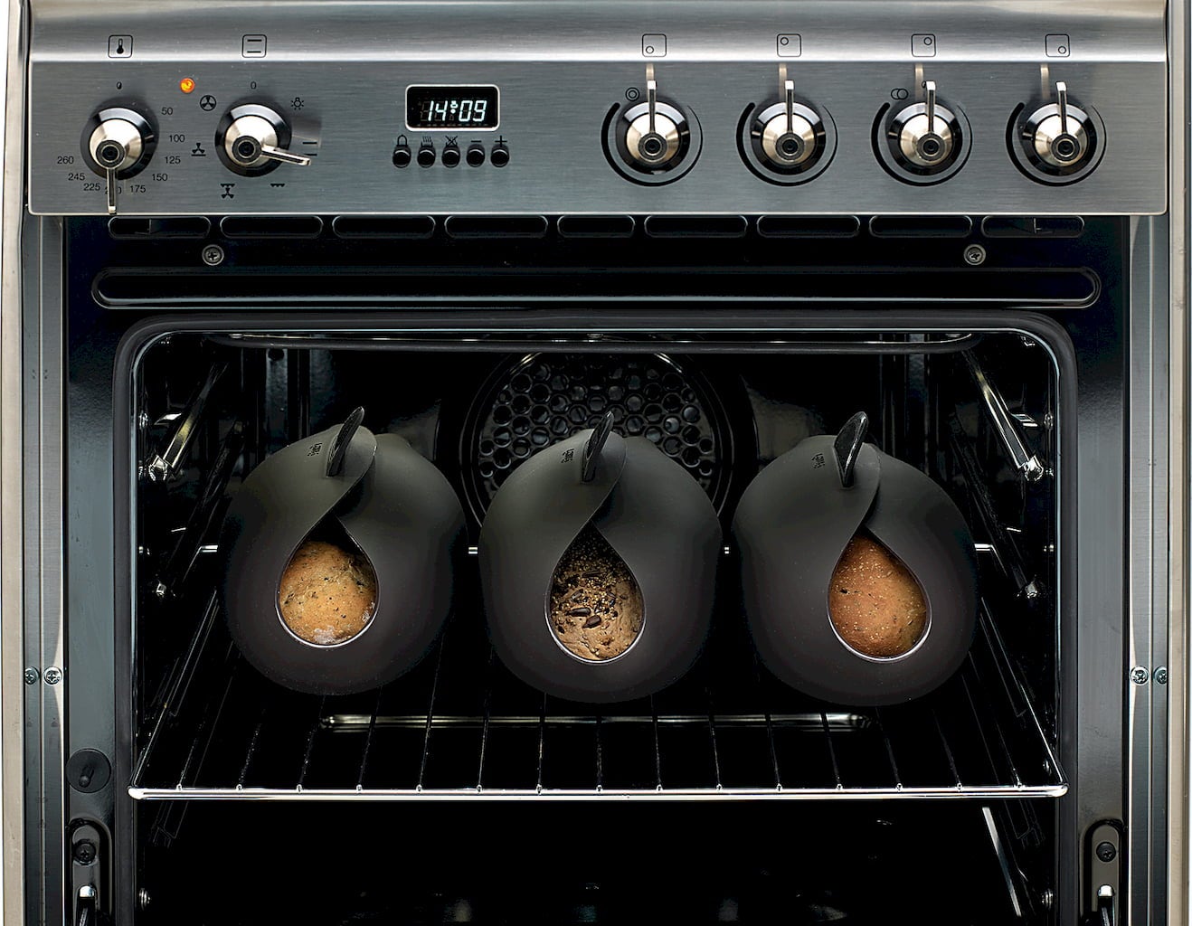 Ten zestaw do pieczenia chleba i bagietek ułatwia rozpoczęcie wspaniałego świata domowych wypieków! Centralnym elementem zestawu jest pomysłowa silikonowa forma do pieczenia chleba. Można w niej bezpośrednio odważyć składniki na chleb, zagnieść ciasto, a następnie upiec je w tym samym pojemniku. Oznacza to mniej bałaganu w kuchni i więcej czasu na delektowanie się chlebem. Specjalna konstrukcja z bocznymi otworami zapewnia cudownie chrupiącą skórkę, a częściowo zamknięta misa umożliwia cyrkulację pary, dzięki czemu chleb jest cudownie wilgotny w środku.