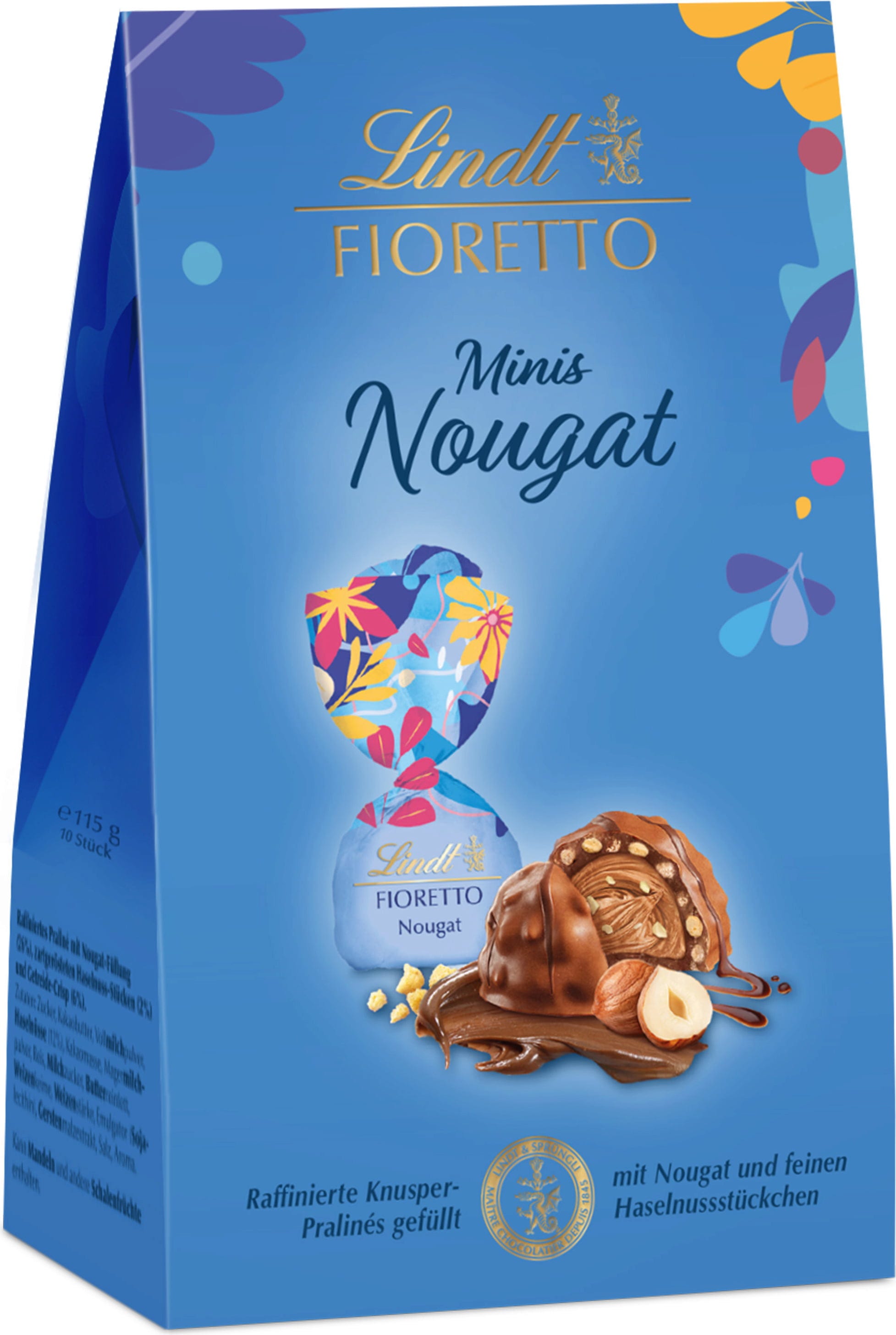 Fioretto Minis Nougat to połączenie delikatnego nadzienia nugatowego i mlecznej czekolady Lindt. Małe praliny nadają się na słodką przekąskę lub pyszny upominek dla ukochanej osoby.