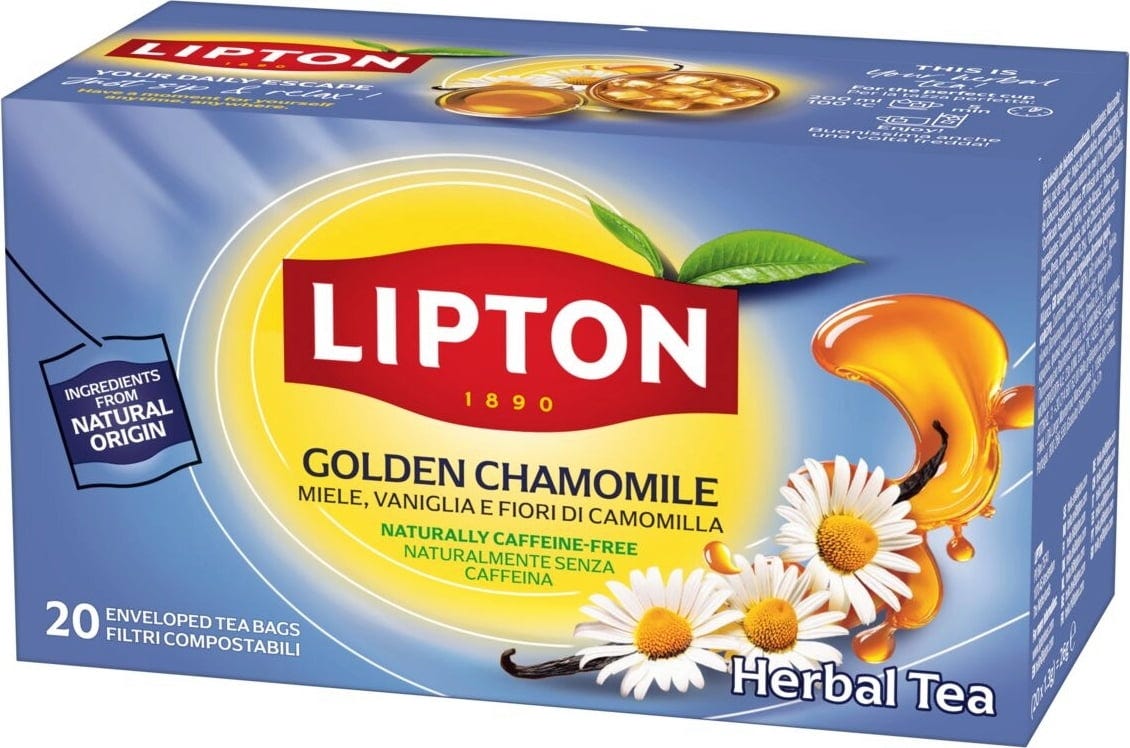 Lipton Golden Chamomile to wyjątkowo łagodna kompozycja delikatnego rumianku z subtelnymi akcentami miodu i wanilii! Ponieważ ta mieszanka naturalnie nie zawiera kofeiny, delikatna słodycz jest idealnym dodatkiem do wieczornych godzin lub krótkich przerw między nimi. Dzięki indywidualnie pakowanym, kompostowalnym torebkom, zaokrąglony smak naturalnych składników jest w pełni zachowany przy każdym naparze.